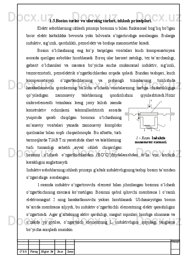 | 1.3 | Bosim turlar va ularning turlari, ishlash prinsiplari ……………..….. | ||