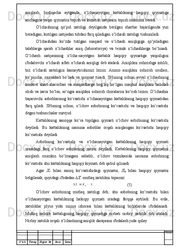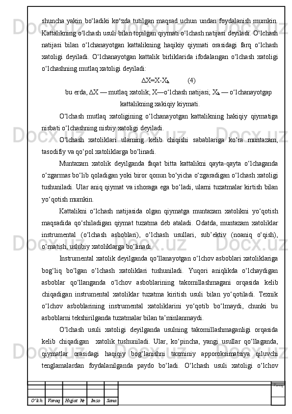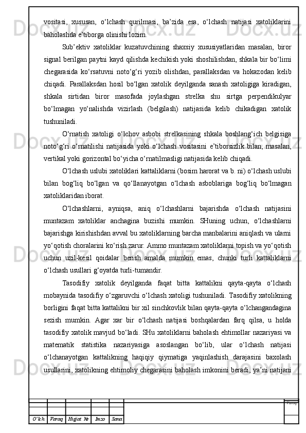 | 1.1 | O‘lchash. O‘lchash usullari haqida ma’lumotlar ……………………… | ||