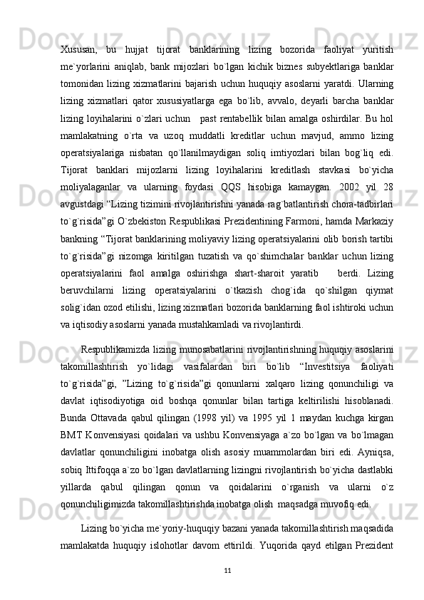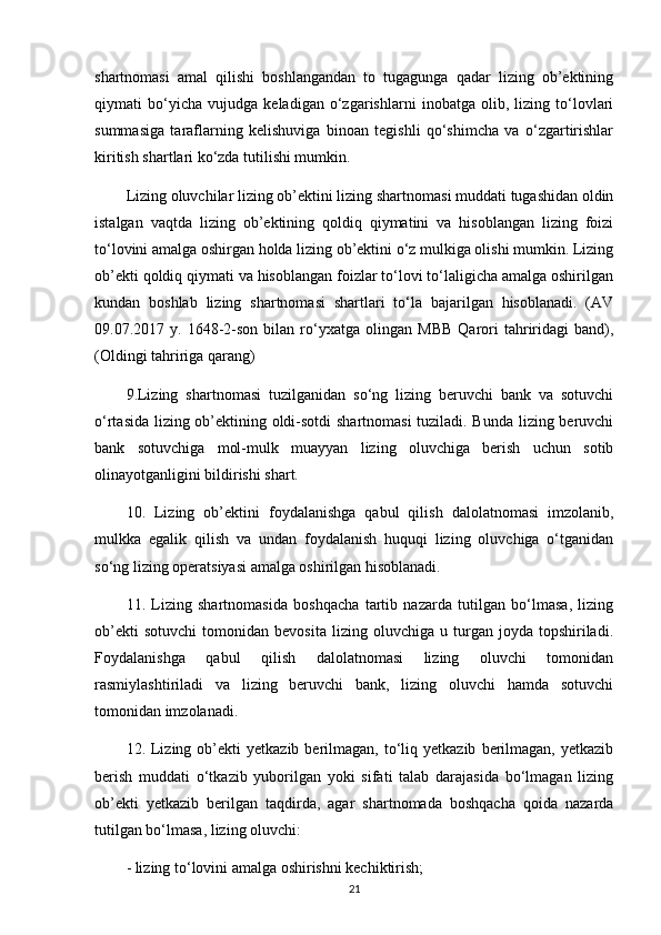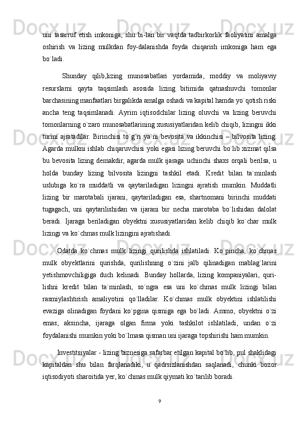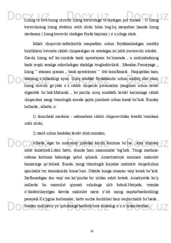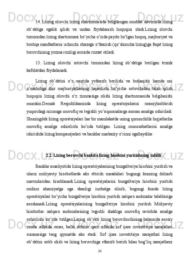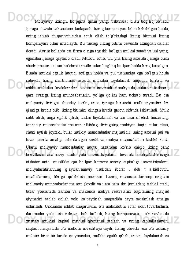 35 Lizing shartnomalar va ularning ahamiyati