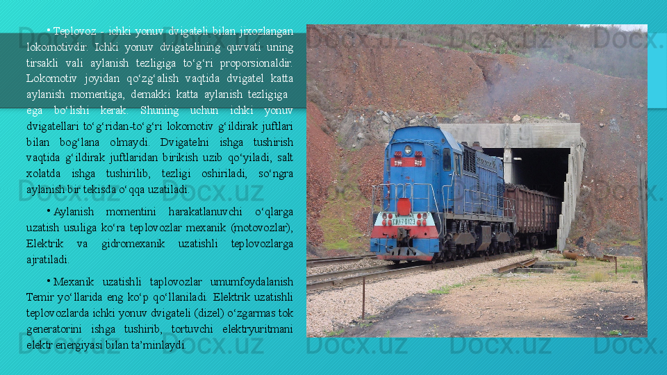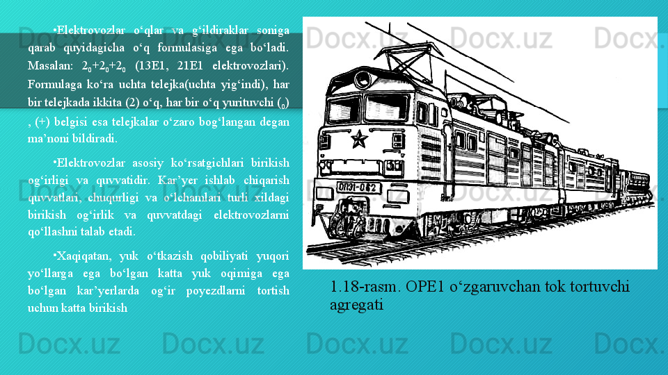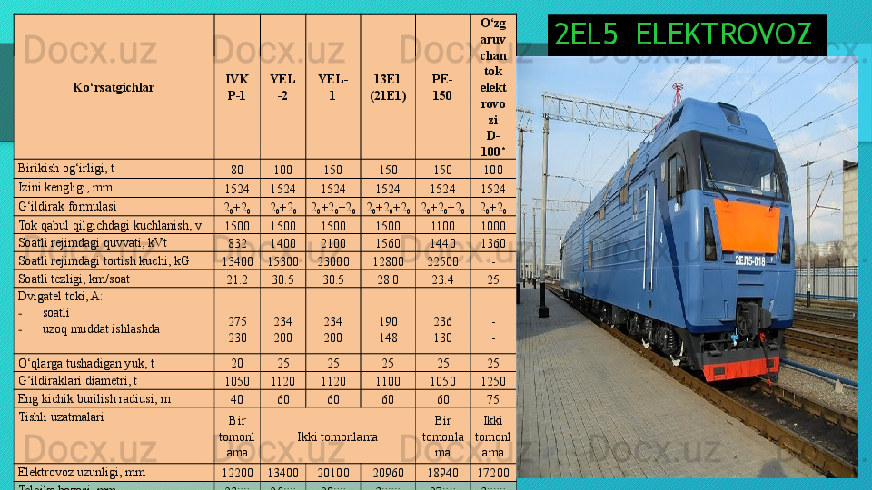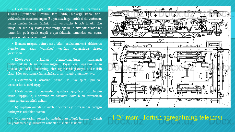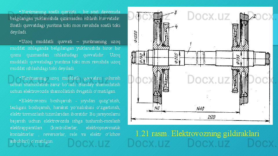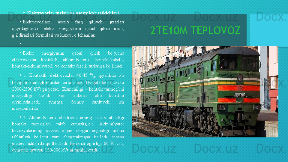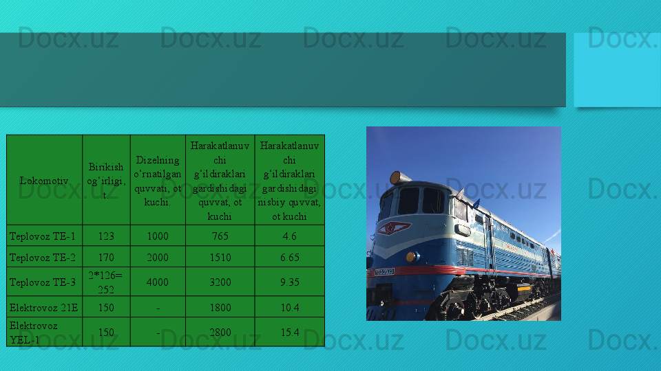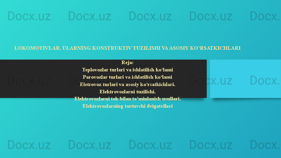 Lokomotivlar. Ularning konstruktiv tuzilishi va asosiy ko’rsatkichlari