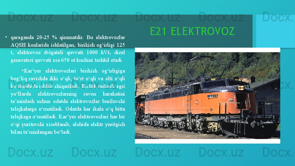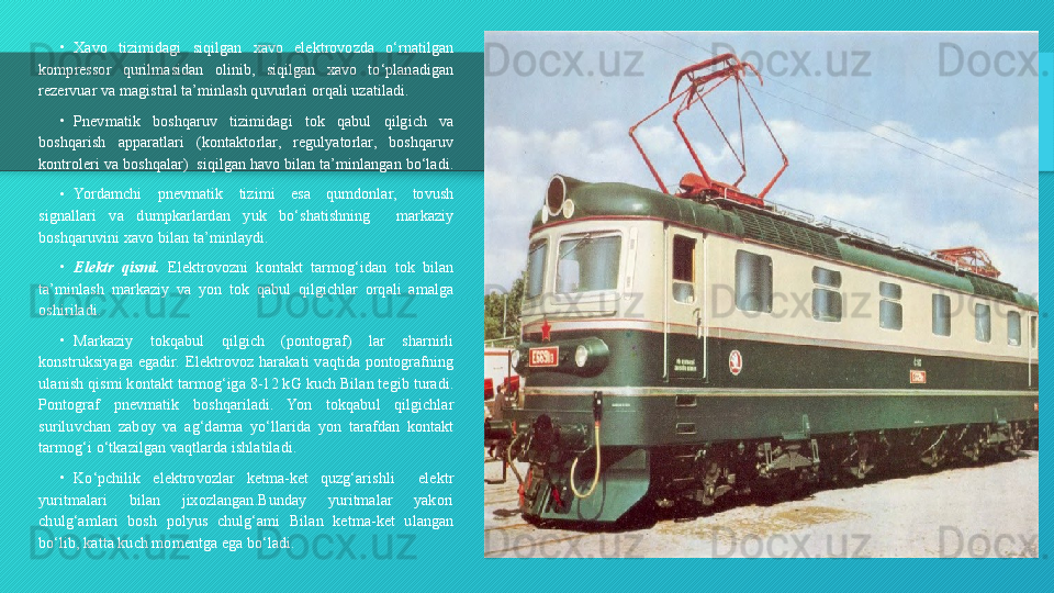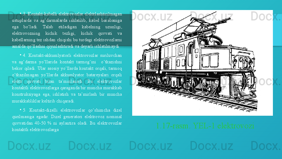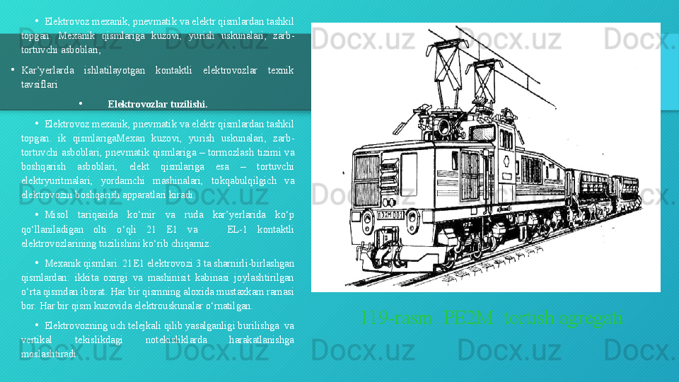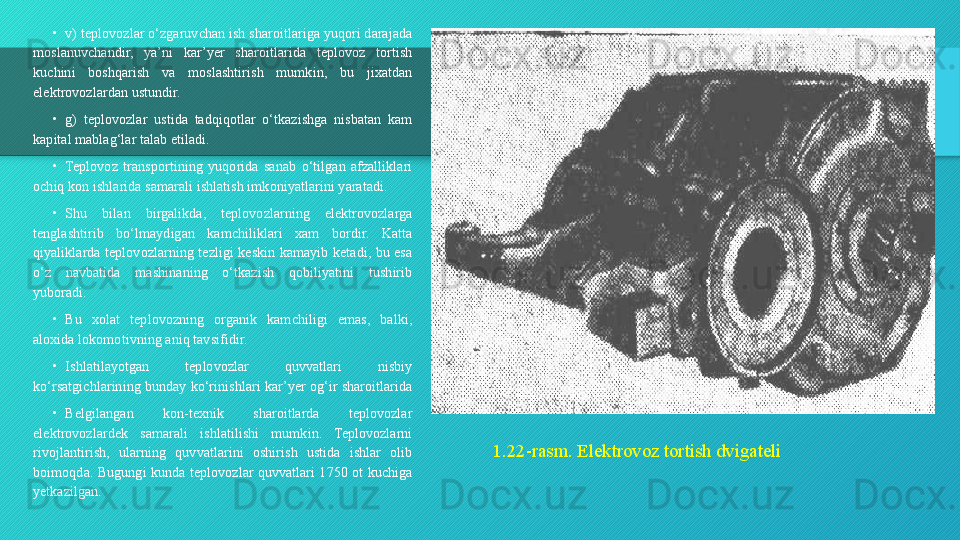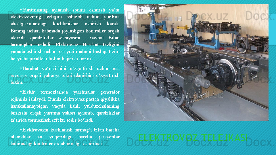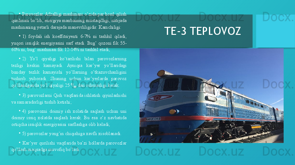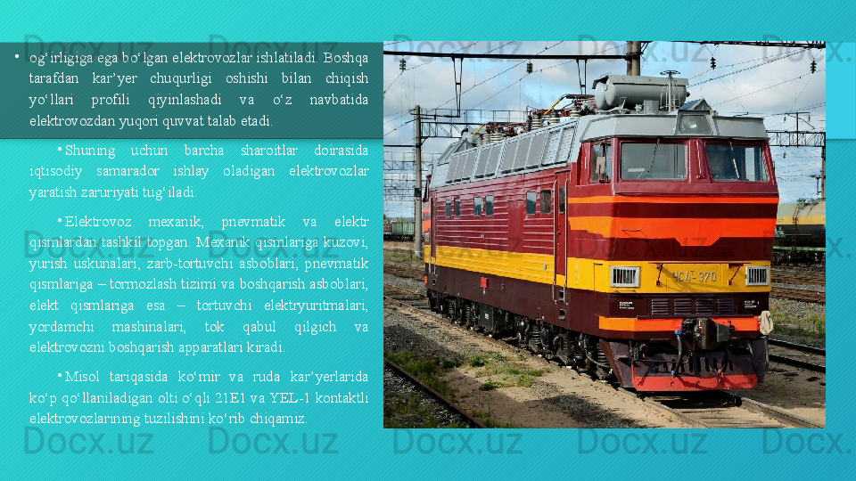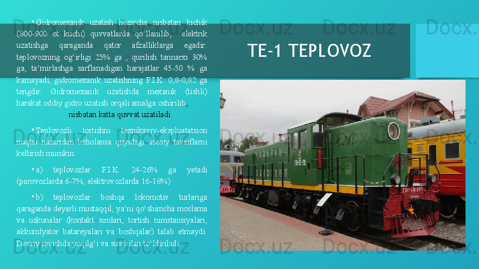Lokomotivlar. Ularning konstruktiv tuzilishi va asosiy ko’rsatkichlari