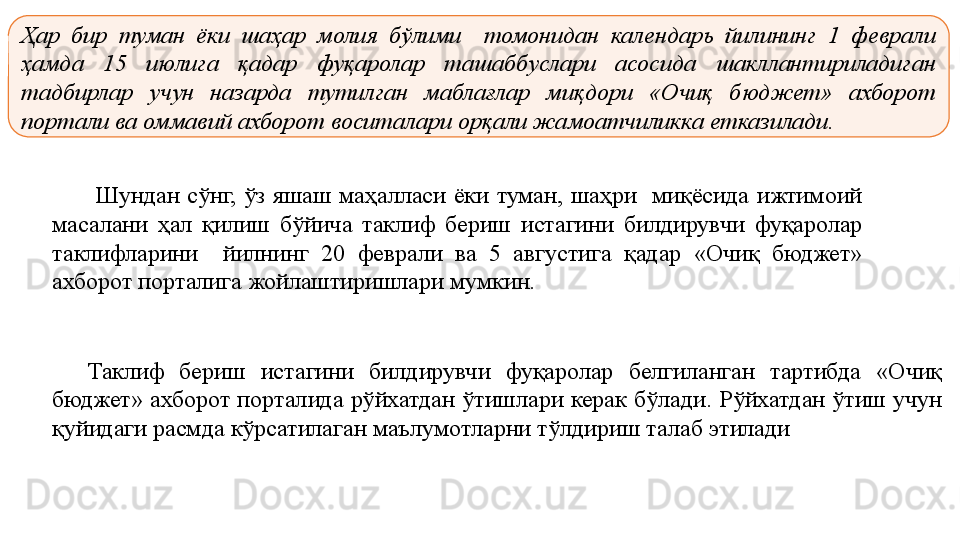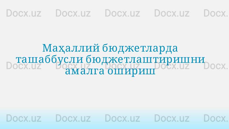Маҳаллий бюджетларда ташаббусли бюджетлаштиришни амалга ошириш