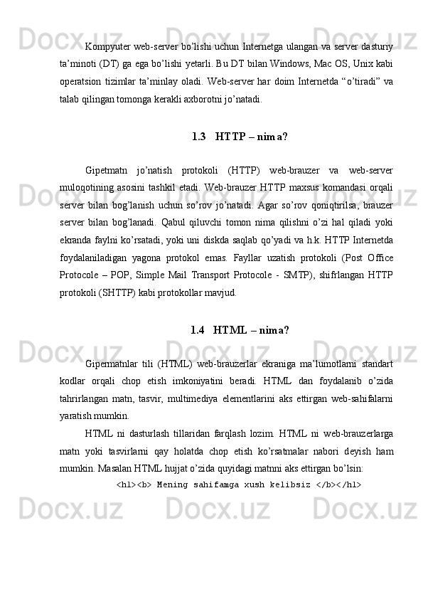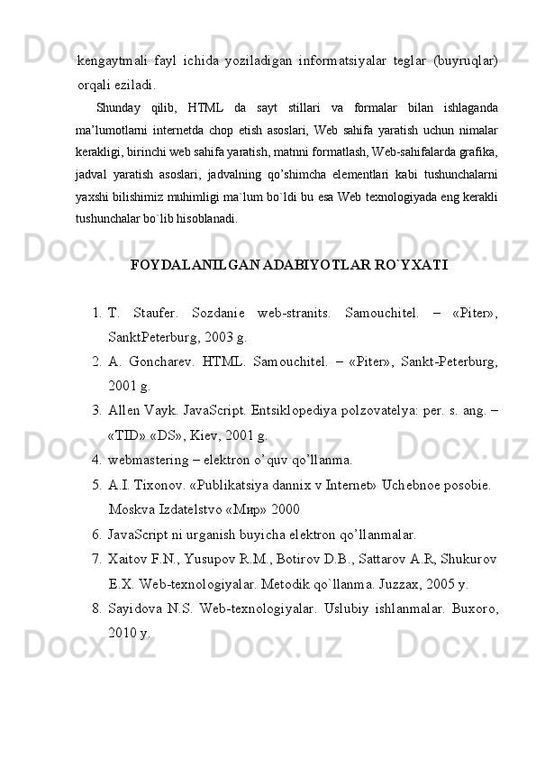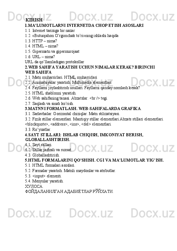 Ma’lumotlarni intеrnеtda chop etish asoslari
