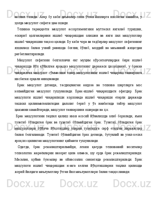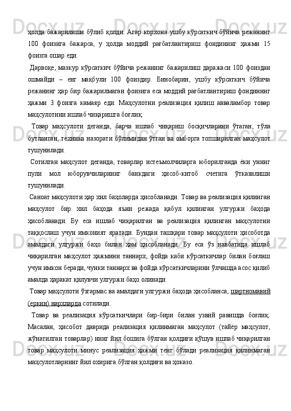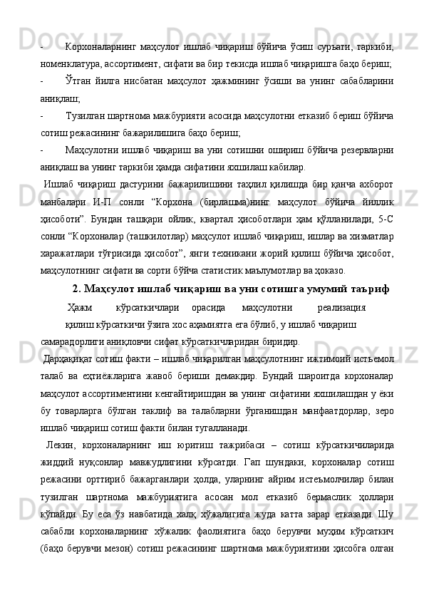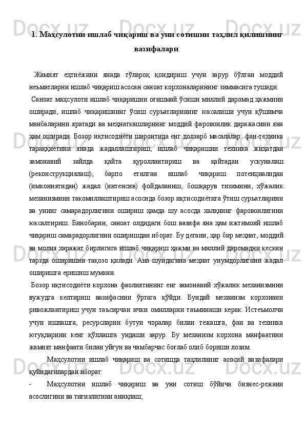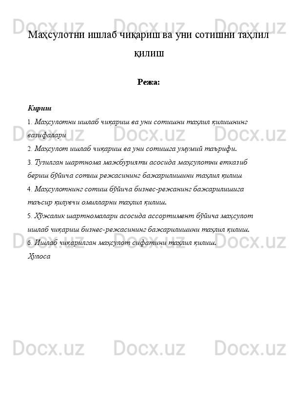 Маҳсулотни ишлаб чиқариш ва уни сотишни таҳлил қилиш