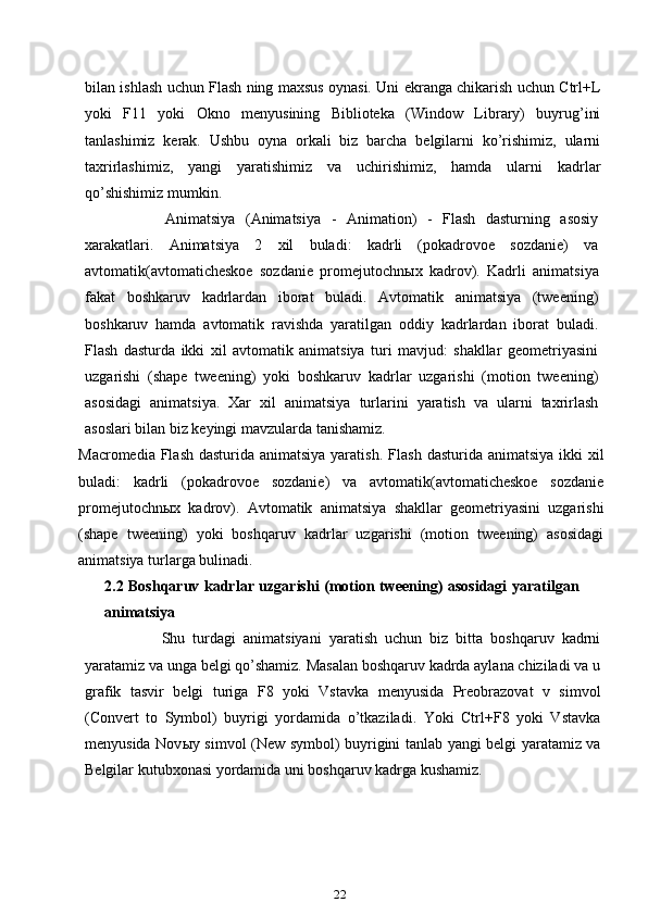 Macromediya flash dasturi yordamida animatsiyalar tayyorlash