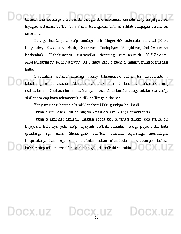 xususiyatlarga   ega.   Har   xil   o’simliklarni   muayyan   gu-ruhlarga   birlashtirish   va   ular