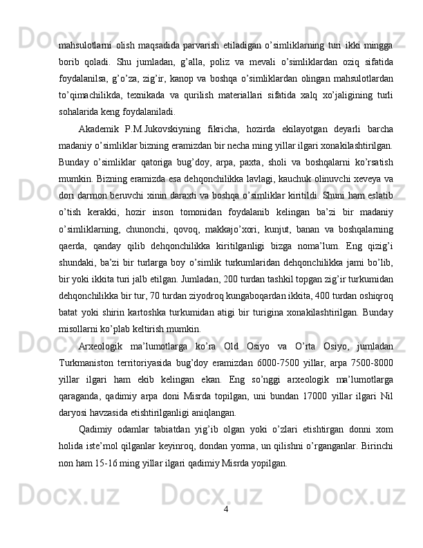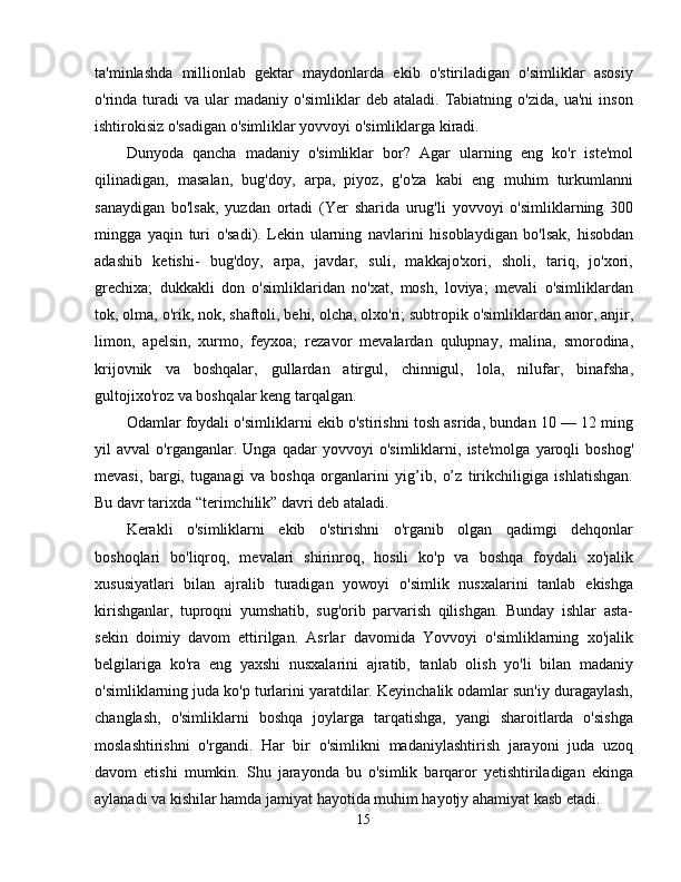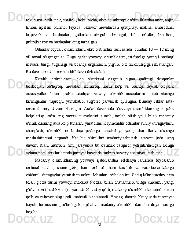 kelgan.   Masalan,   tariq,   sholi,   grechixa,   piyozning,   shuningdek,   olma,   nok,   o'rik,