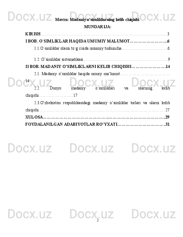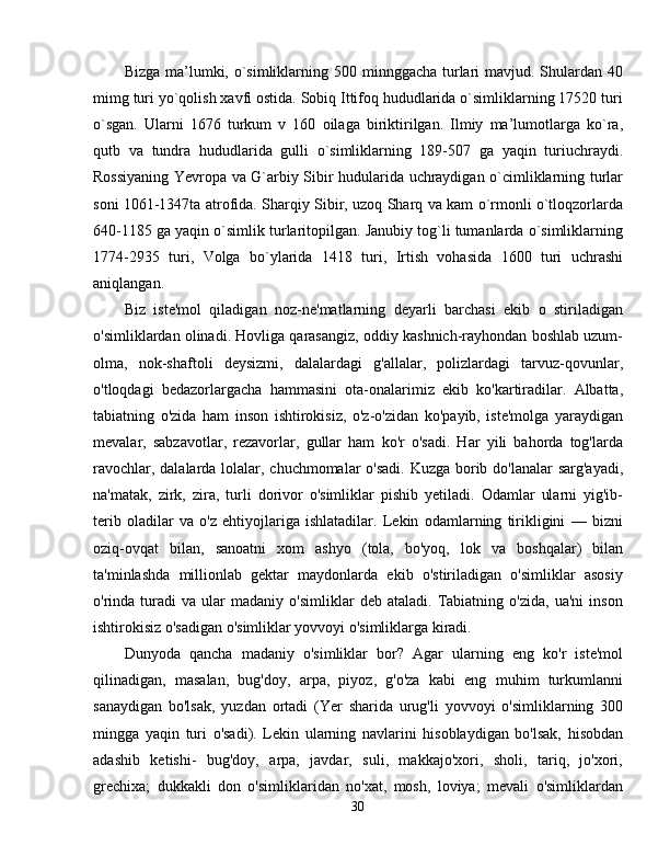 2.1.   Madaniy   o’simliklar   haqida   umuiy   ma’lumot………………………………