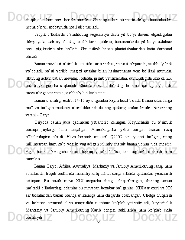 hosil   yig`ishtirib   olsa   bo’ladi.   Shu   tufayli   banan   plantatsiyalaridan   katta   daromad
