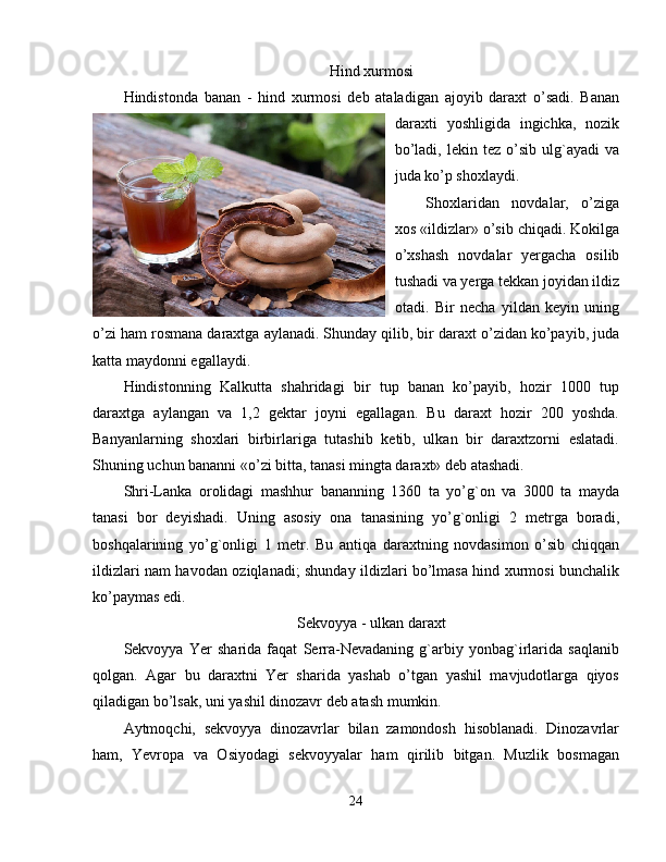 o’lkalardagina   o’sadi.   Havo   harorati   muttasil   Q20°C   dan   yuqori   bo’lgan,   ming