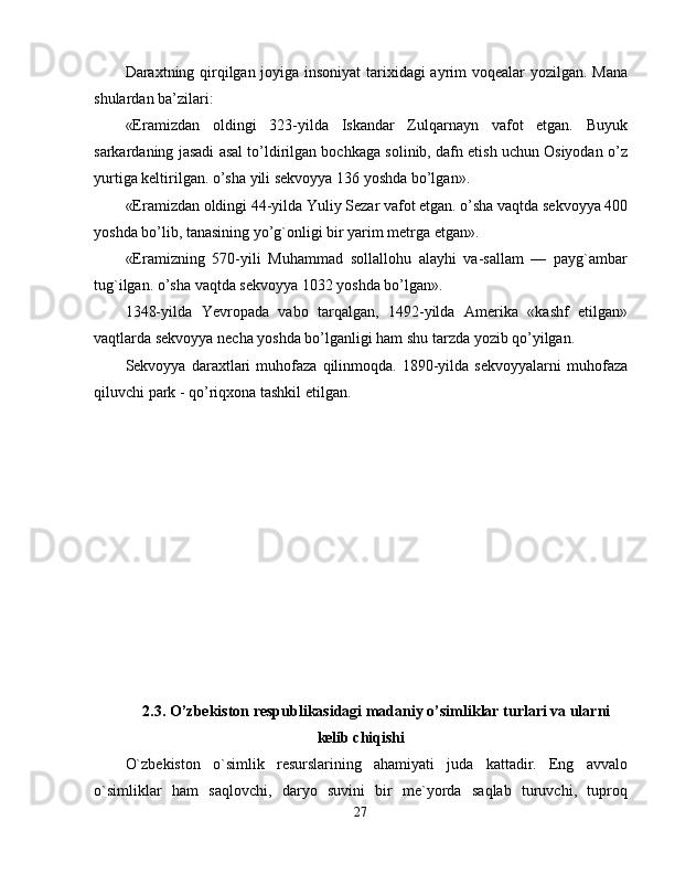 2.3.O’zbekiston   respublikasidagi   madaniy   o’simliklar   turlari   va   ularni   kelib