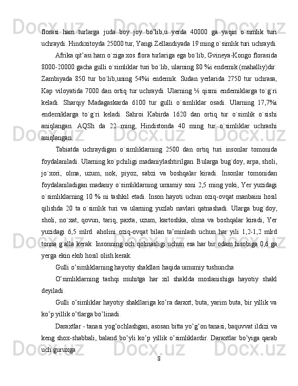 florasining   ayrim   vakillari   mavjud.   Boshqa   kontinentlarning   500   ga   yaqini