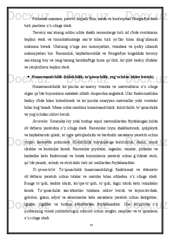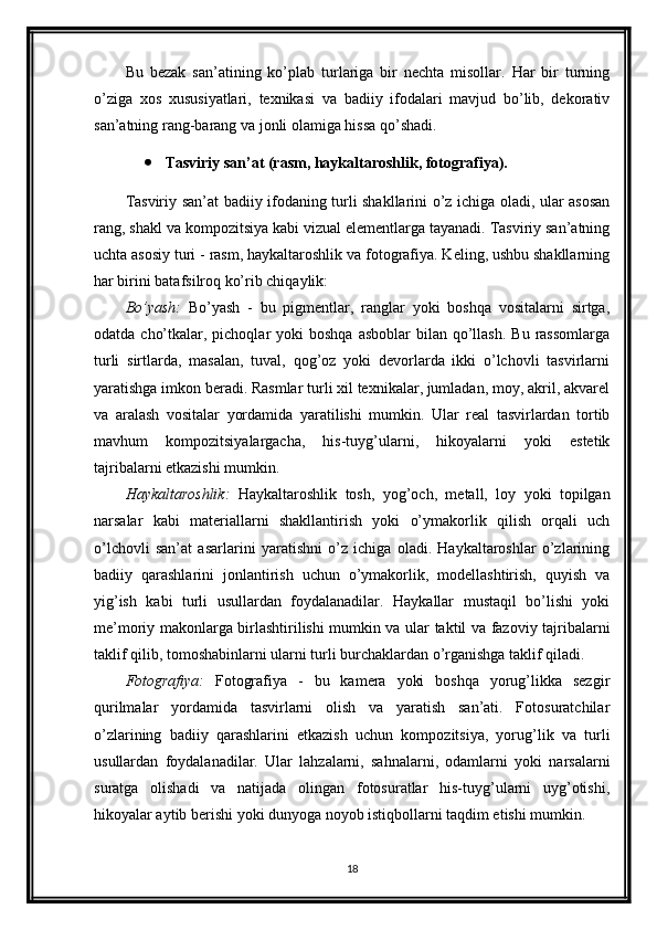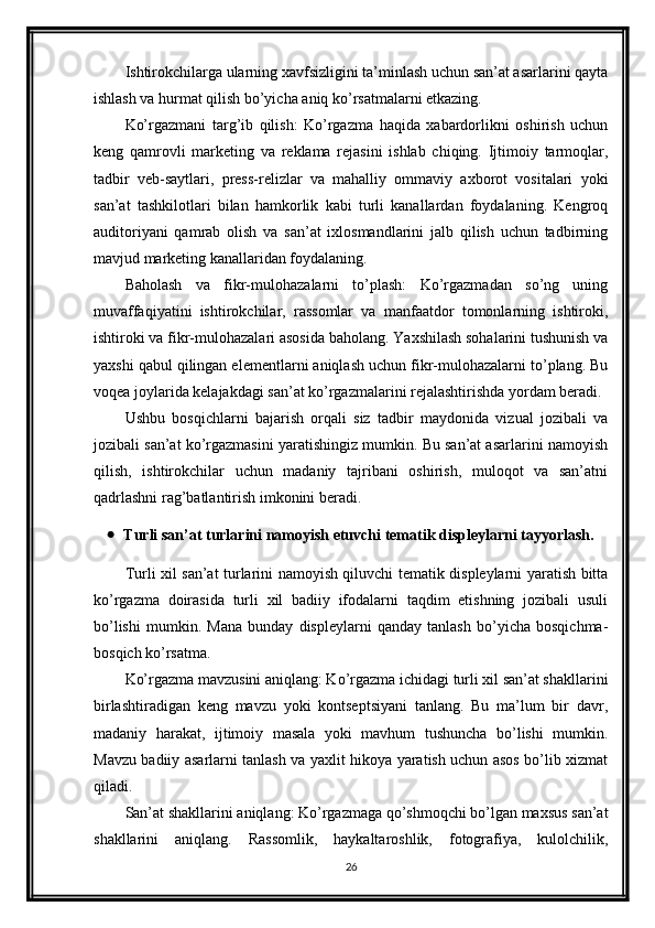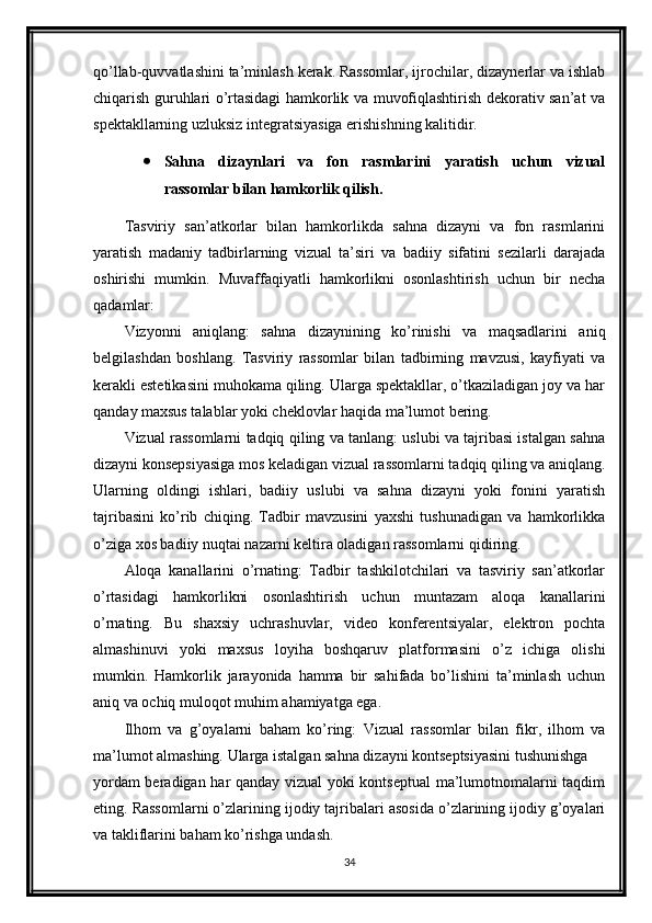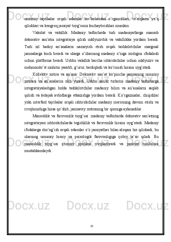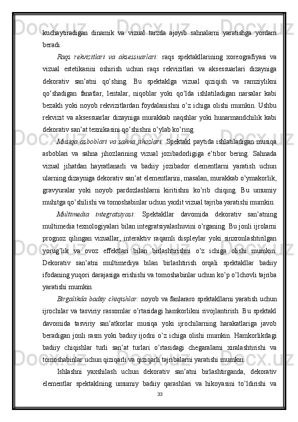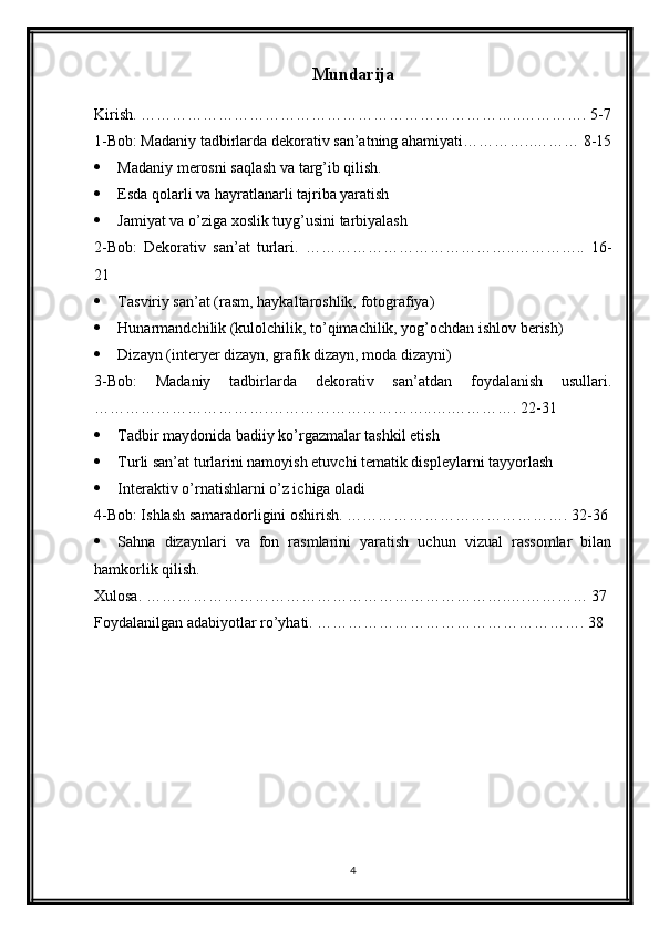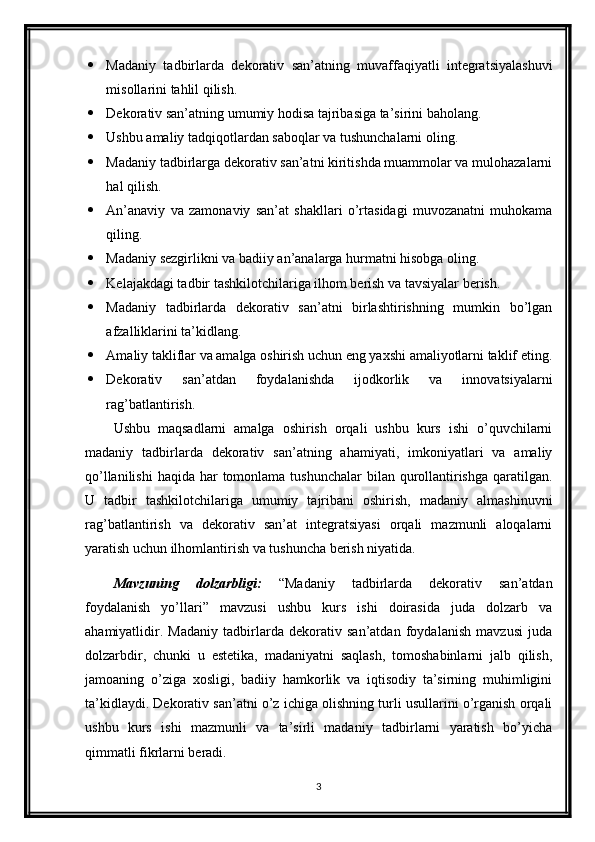Madaniy tadbirlarda badiiy bezak sanatidan foydalanish yo’llari