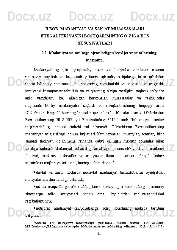 olish xususiyatlarini, shu jumladan madaniy tashkilotlarda ham belgilaydi.