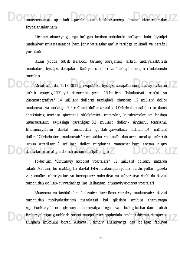 16-bo‘lim   "Ommaviy   axborot   vositalari"   12   milliard   dollorni   nazarda