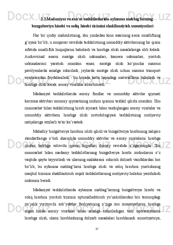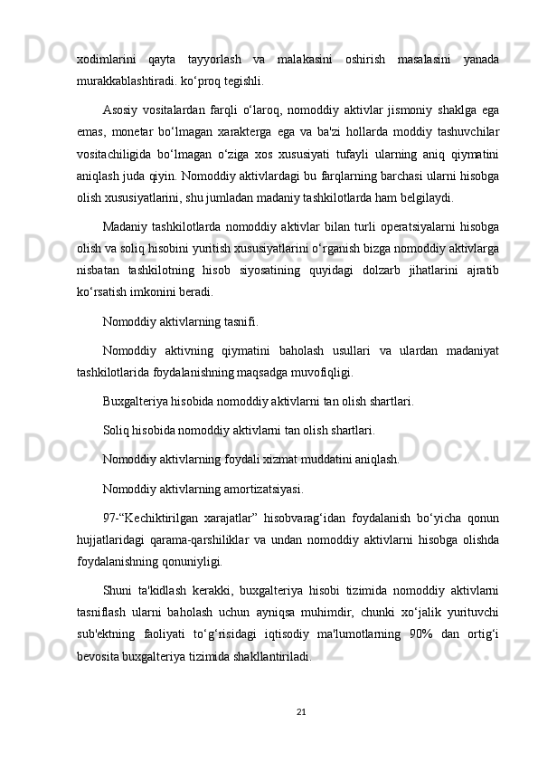 qo‘llashni   talab   qiladi,   bu   esa   madaniy   tashkilotlarda   buxgalteriya   xizmati