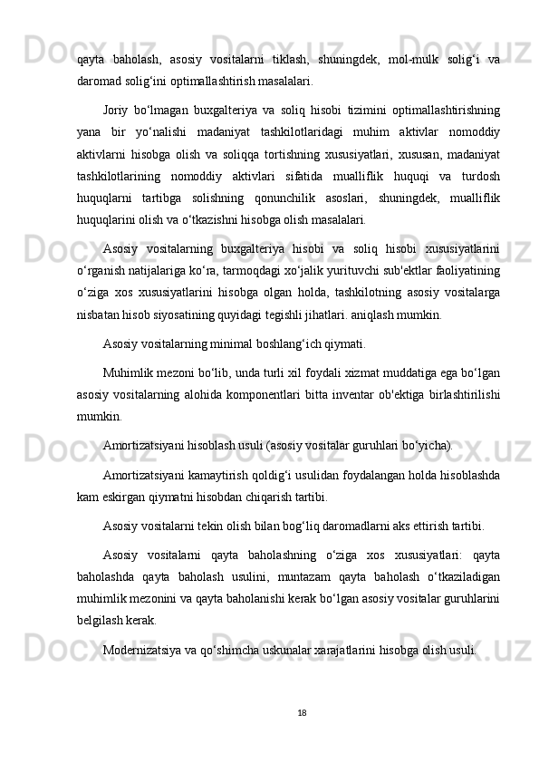 yo‘nalishlarini   oldindan   aniqlash   imkonini   beradi.   "Asosiy   vositalarni   hisobga