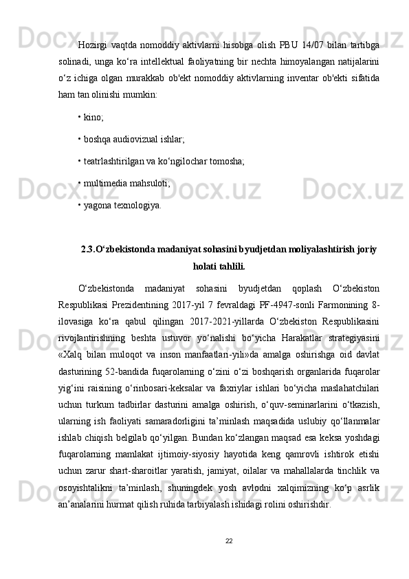moliyaviy   ko‘rsatkichlariga,   xususan,   kino   tashkilotlari   faoliyatini   baholashga