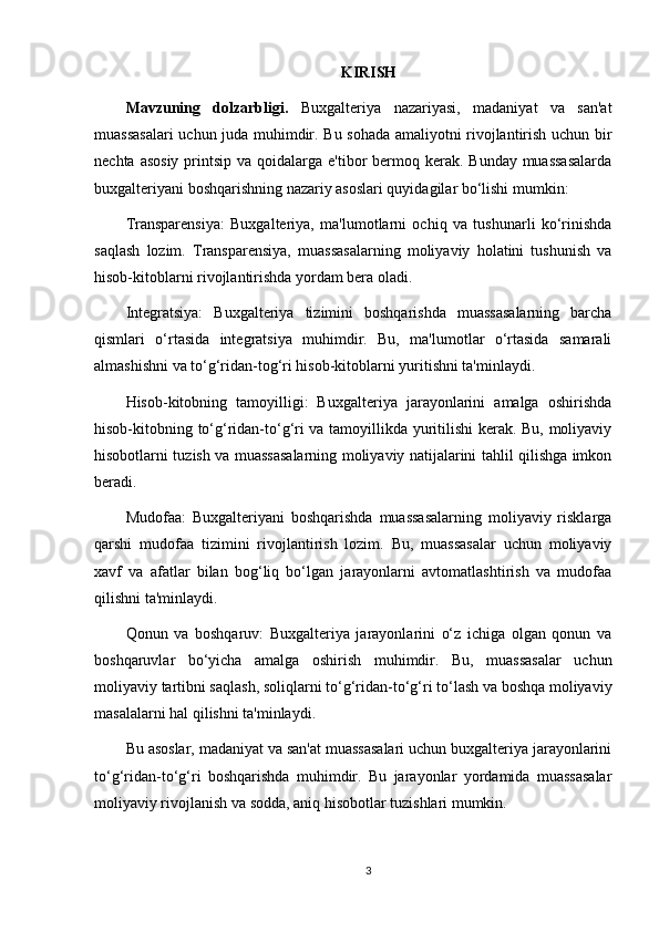 Mavzuning   dolzarbligi.   Buxgalteriya   nazariyasi,   madaniyat   va   san'at