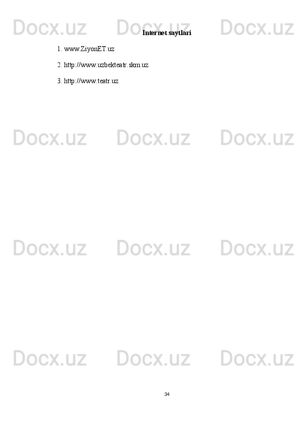 1. Sayfullayev B., Mamatqosimov J. Aktyorlik mahorati: darslik. –Toshkent: