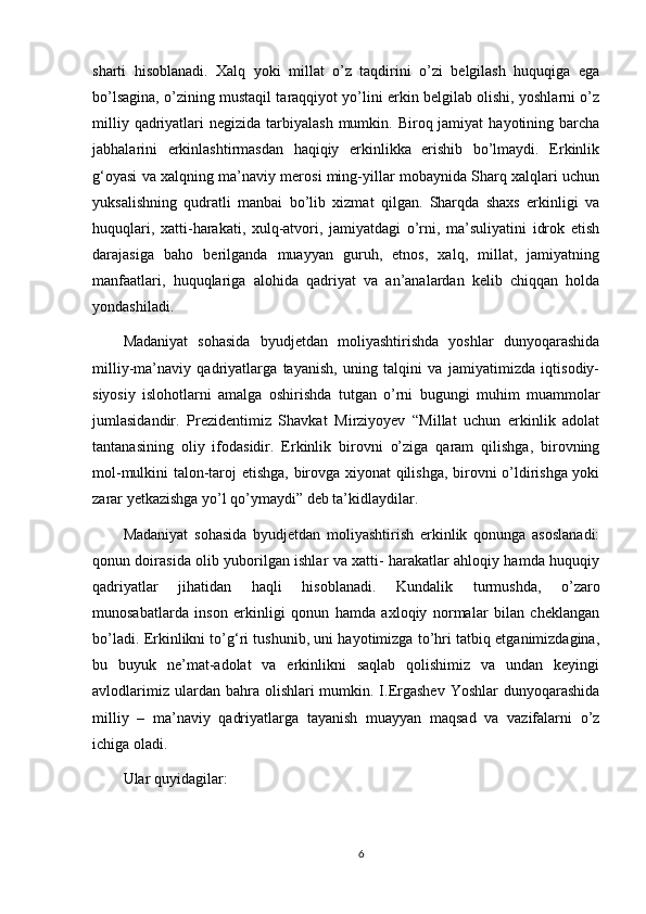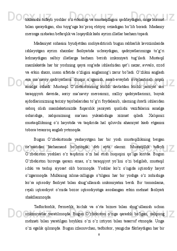 bо’lsagina, о’zining mustaqil taraqqiyot yо’lini erkin belgilab olishi, yoshlarni о’z