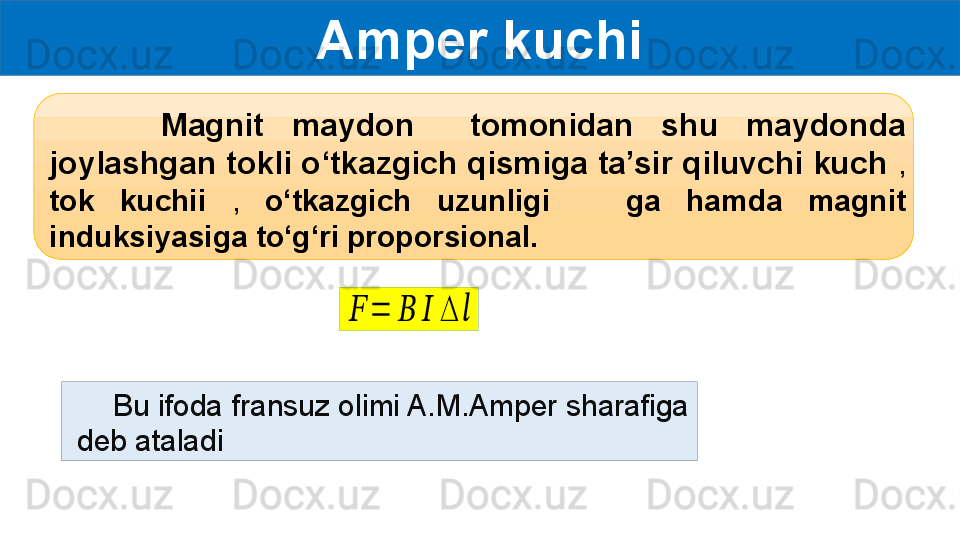 Magnit maydonining tokli o’tkazgichga ta’siri