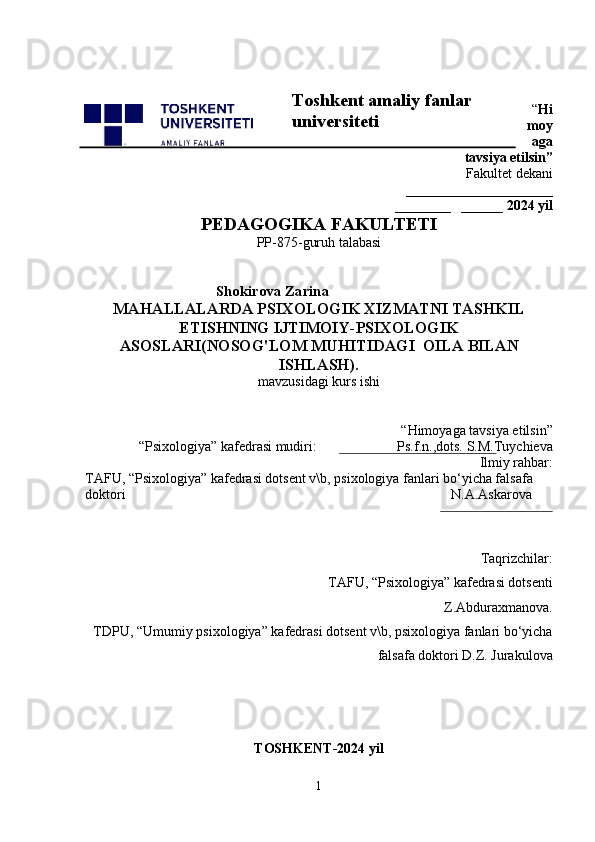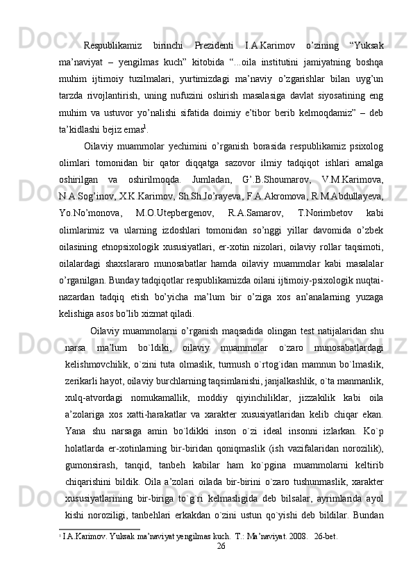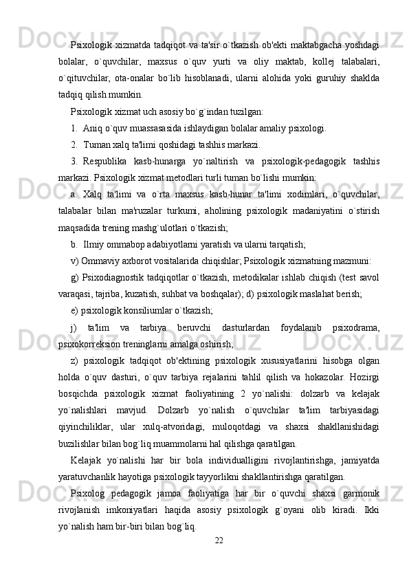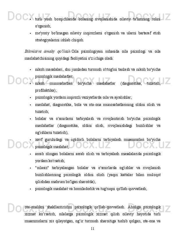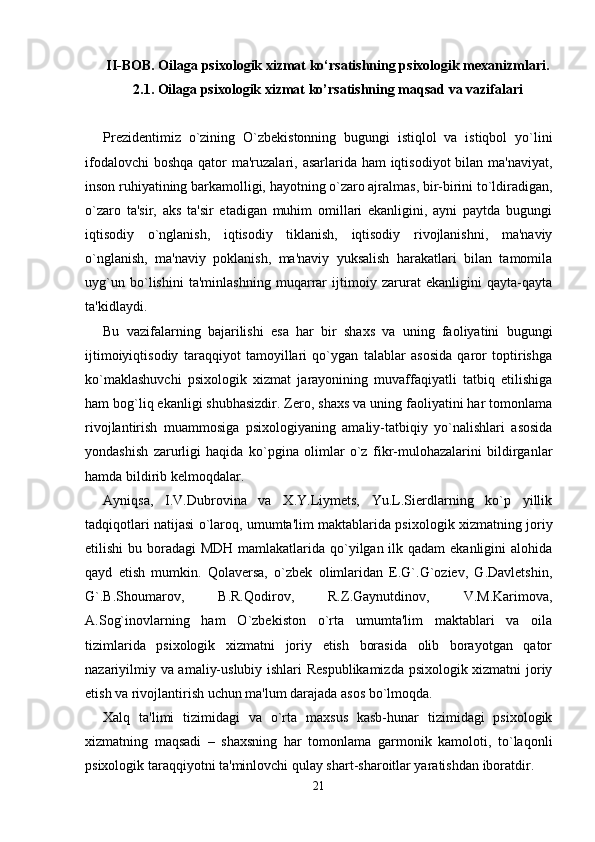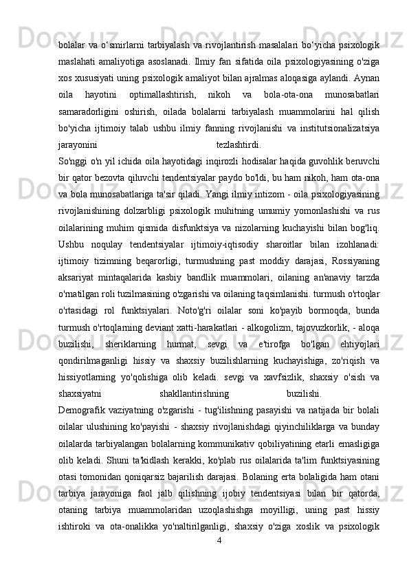 Mahallalarda psixologik xizmatni tashkil etishning ijtimoiy-psixologik asoslari (nosog'lom muhitidagi oila bilan ishlash).