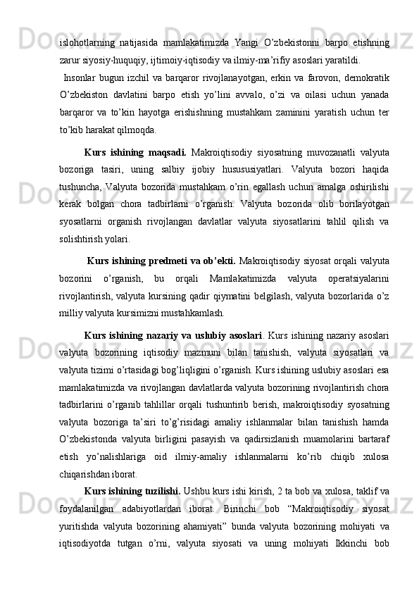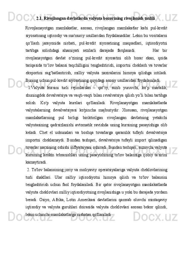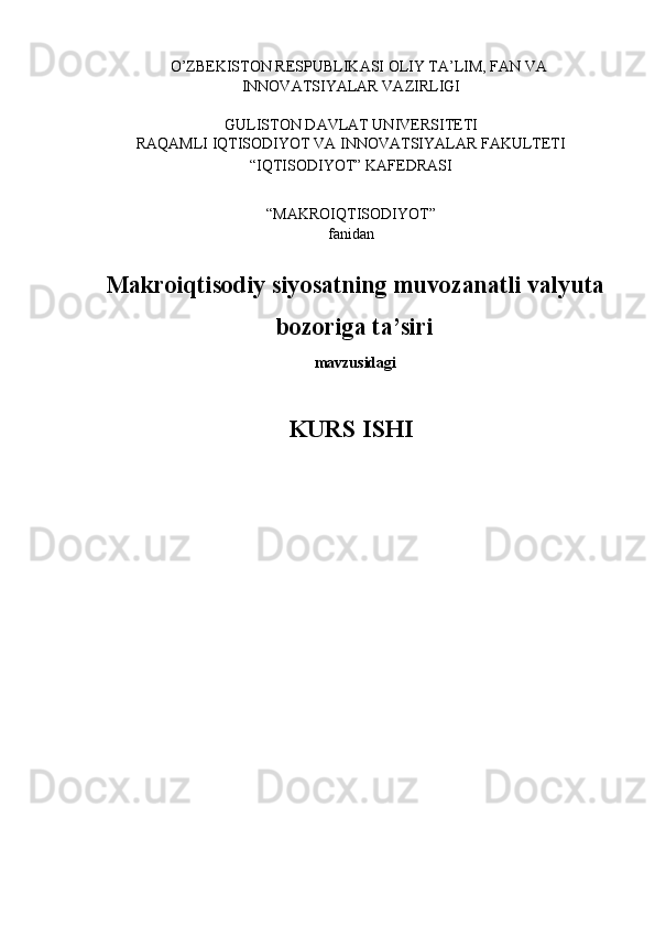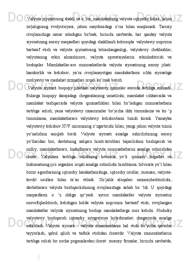 Makroiqtisodiy siyosatning muvozanatli valyuta bozoriga ta’siri