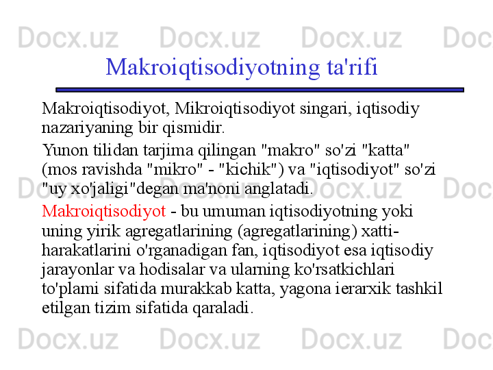 Makroiqtisodiyotga kirish. Makroiqtisodiyot fan sifatida