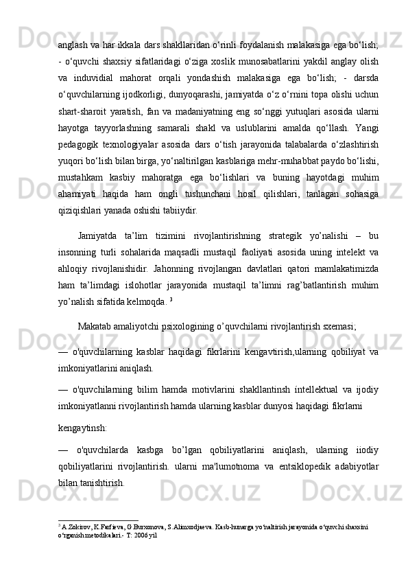MAKTAB TIZIMIDA KASBGA YO‘NALTIRISH ISHLARIDA PSIXODIAGNOSTIK METODIKALARNI QO‘LLASH.
