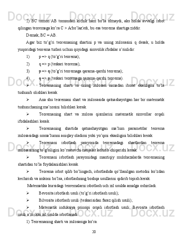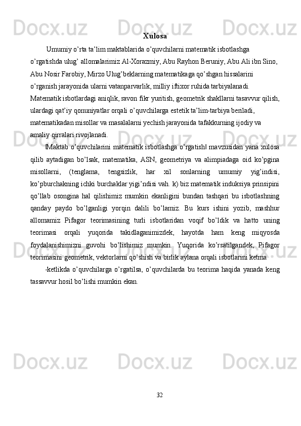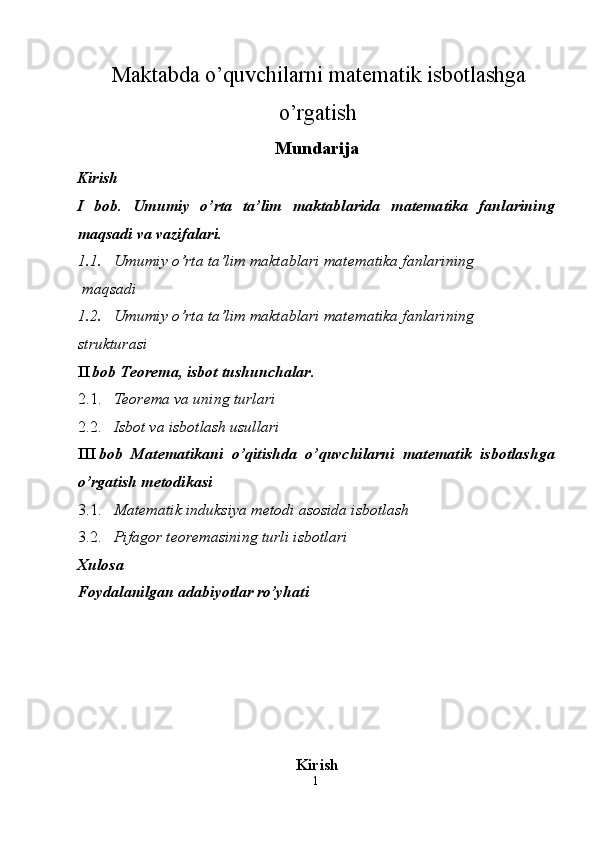 Maktabda o'quvchilarni matematik isbotlashga o'rgatish