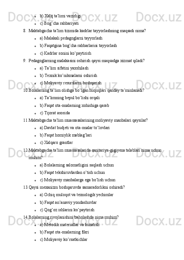 Maktabgacha ta’lim sohasida boshqaruv tizimini takomillashtirish.