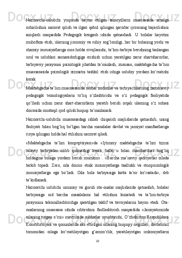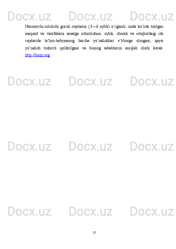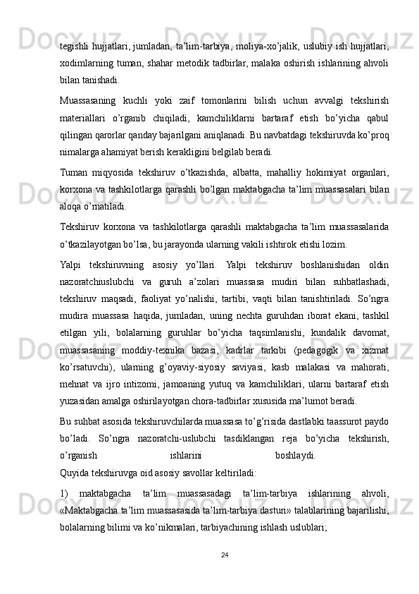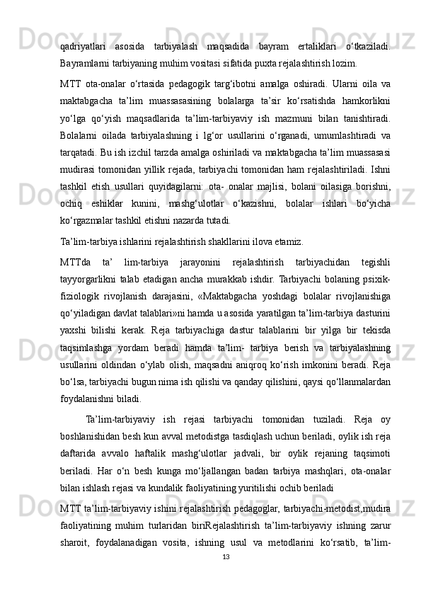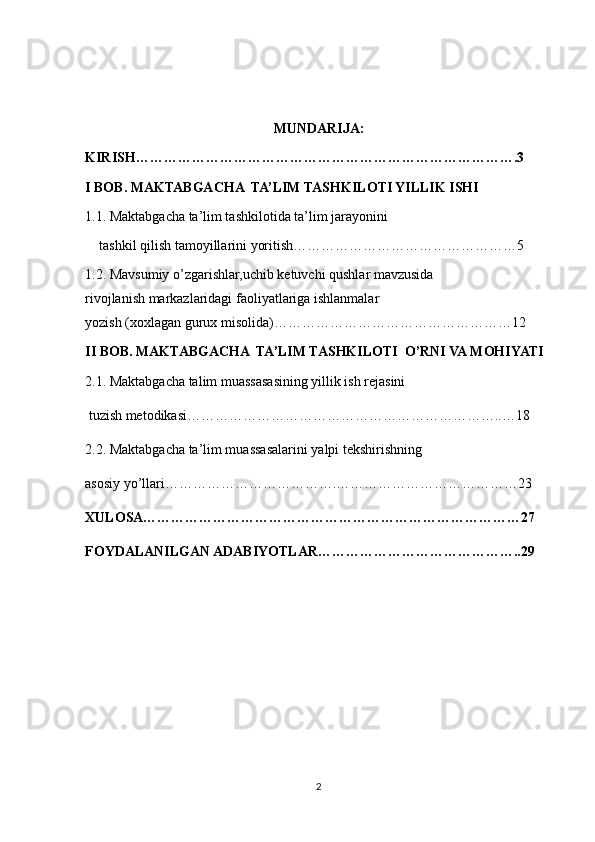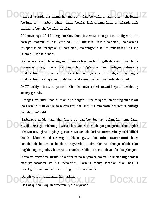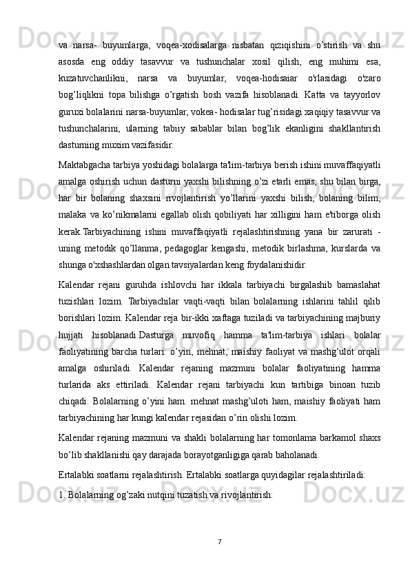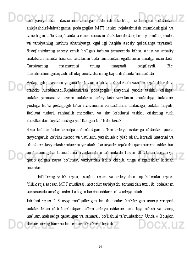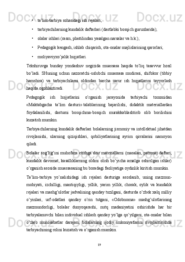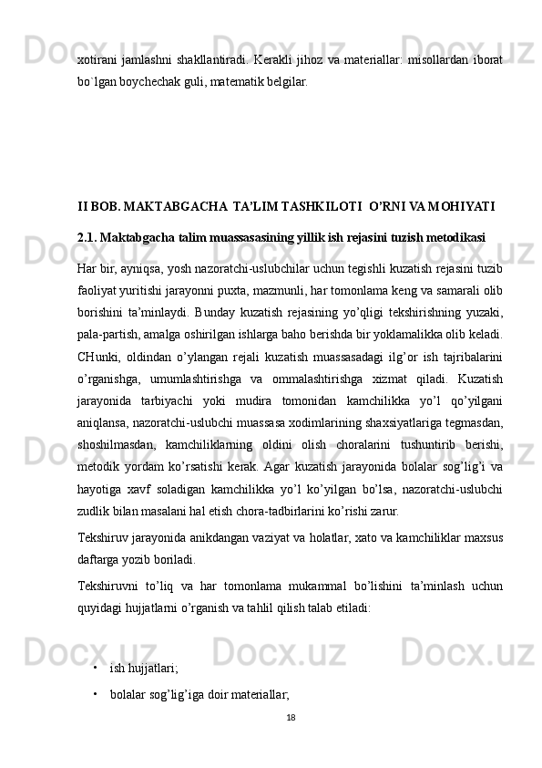Maktabgacha ta’lim tashkiloti yillik ish rejasining moxiyati, maqsad va vazifalari