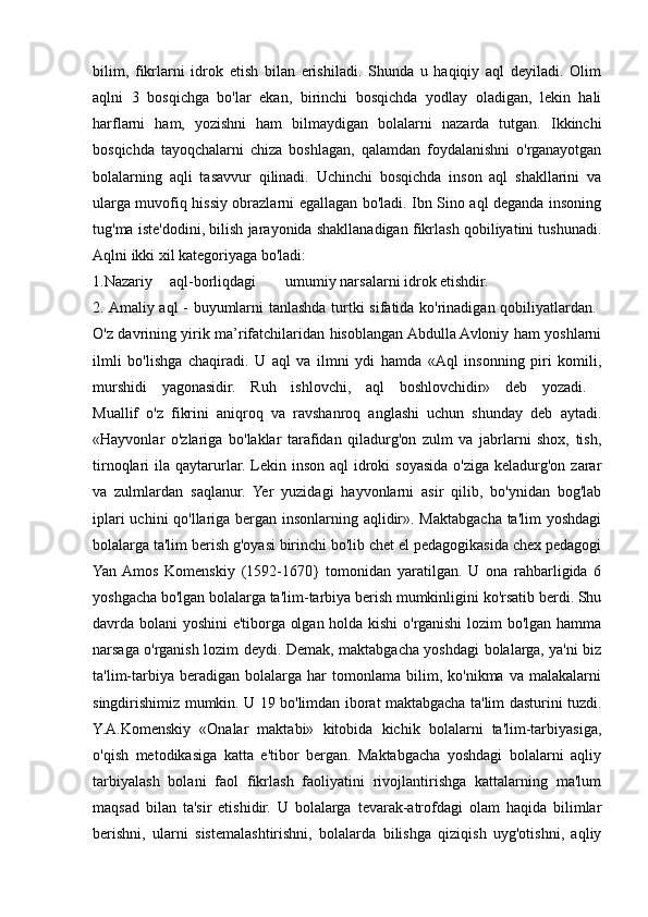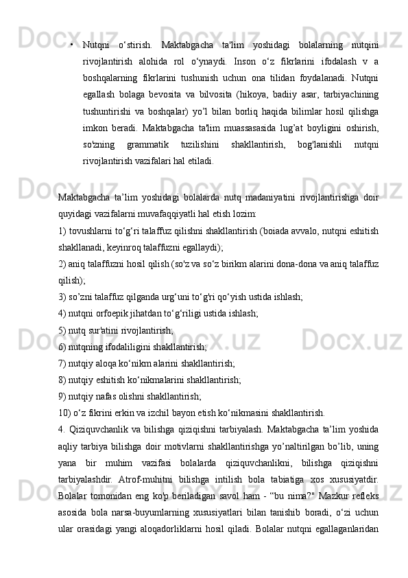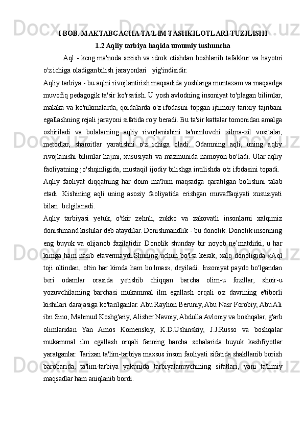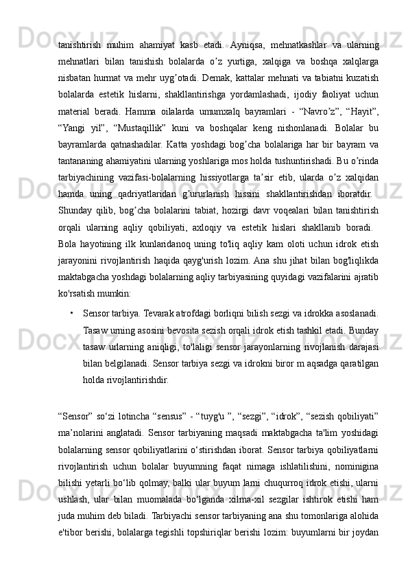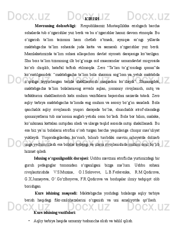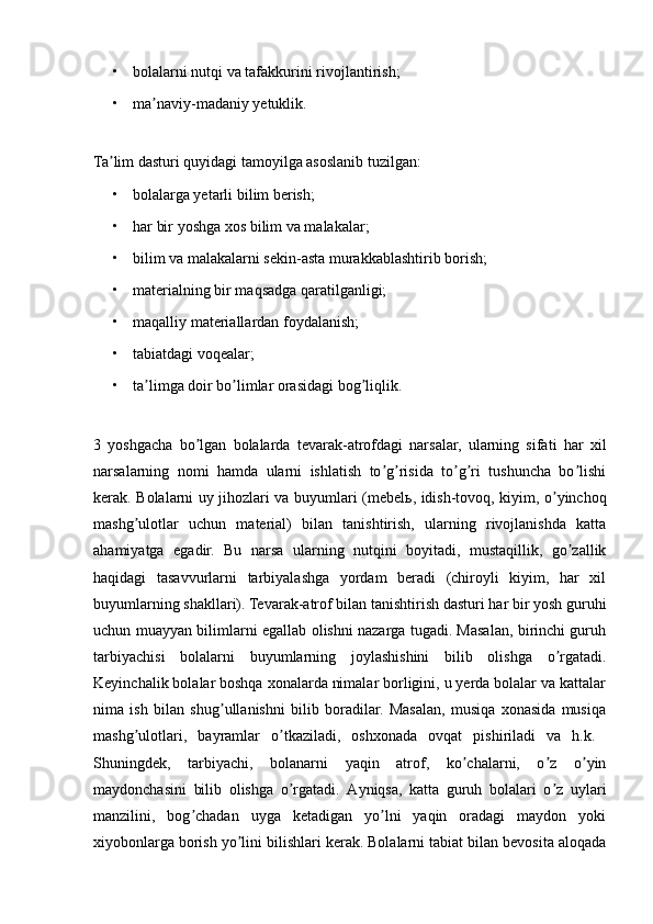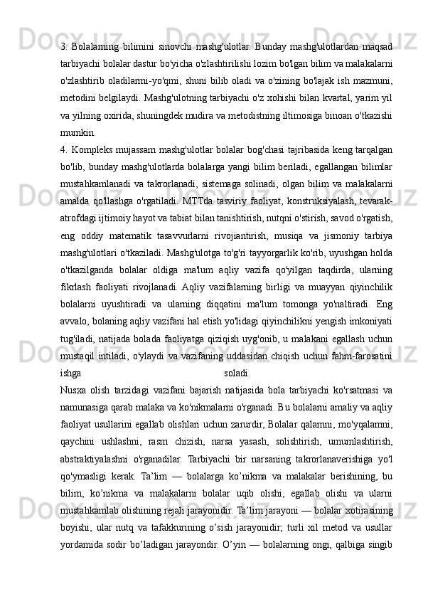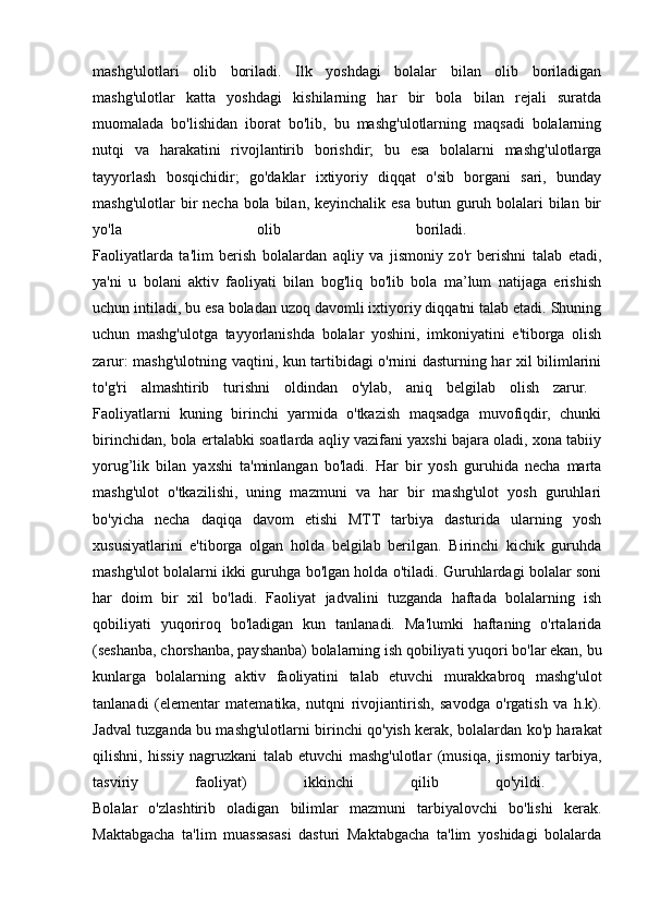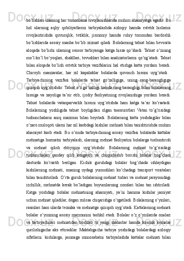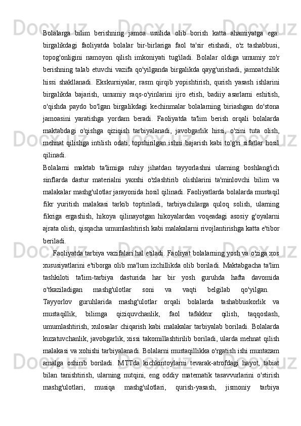 Maktabgacha ta'lim tashkilotlari katta yosh guruh bolalarida aqlliy tarbiya berishning mazmun mohiyati