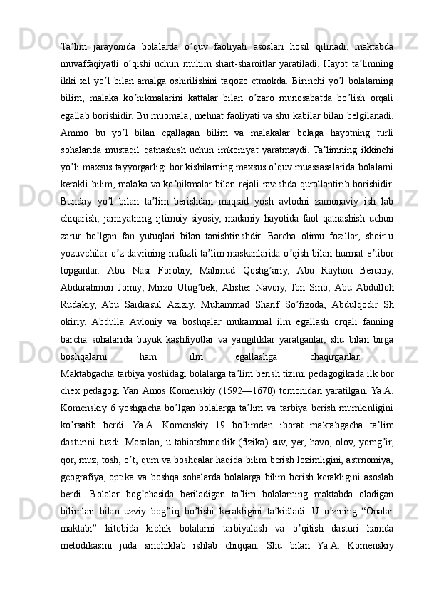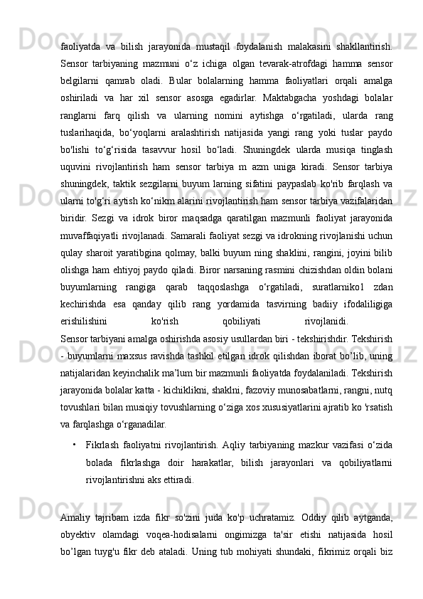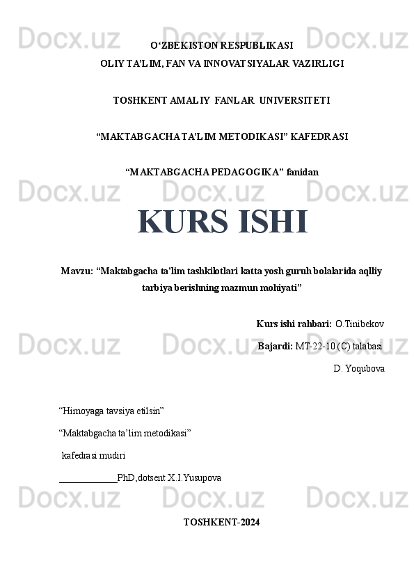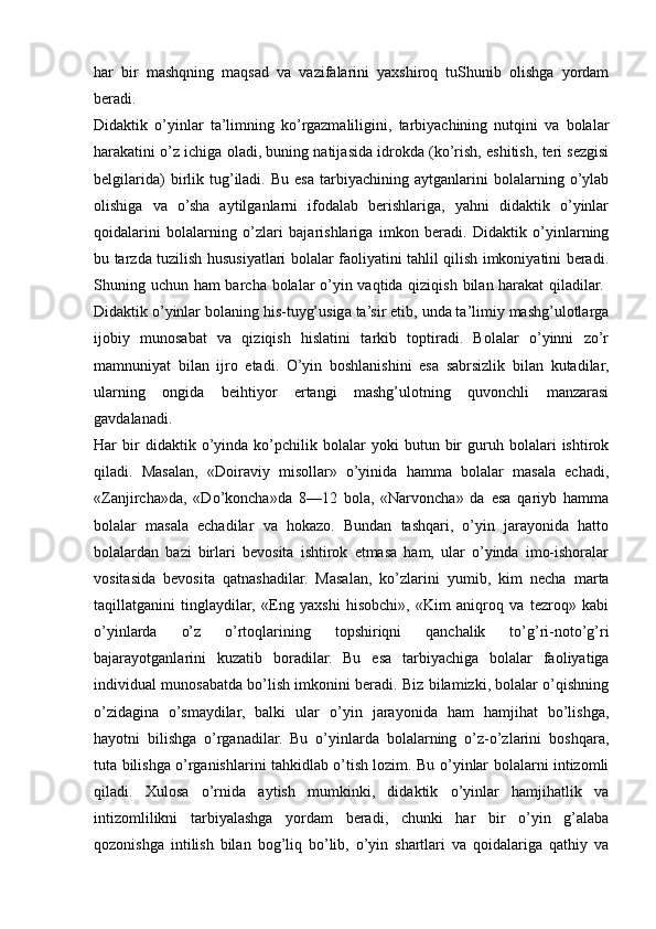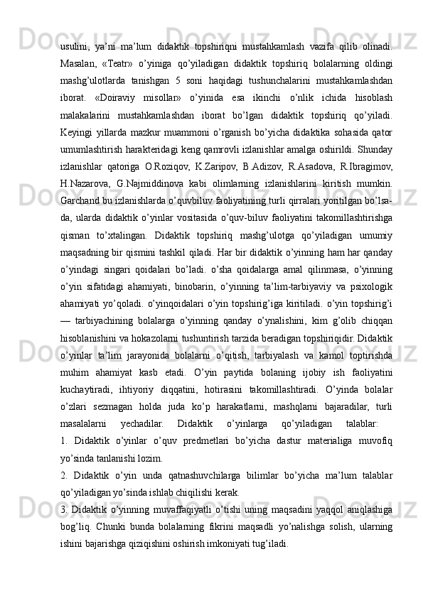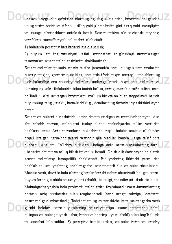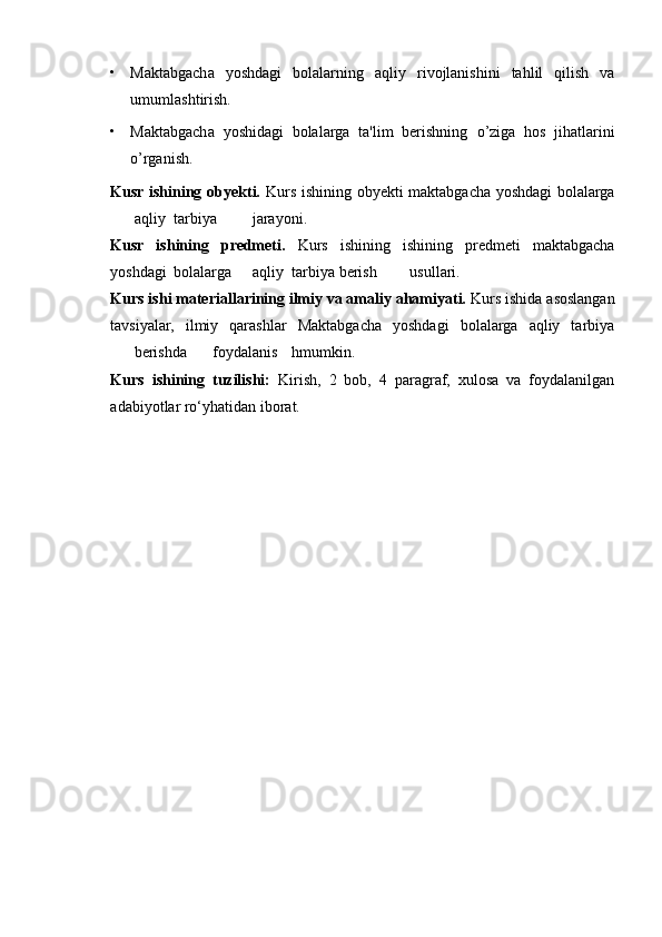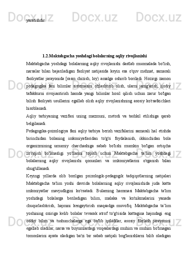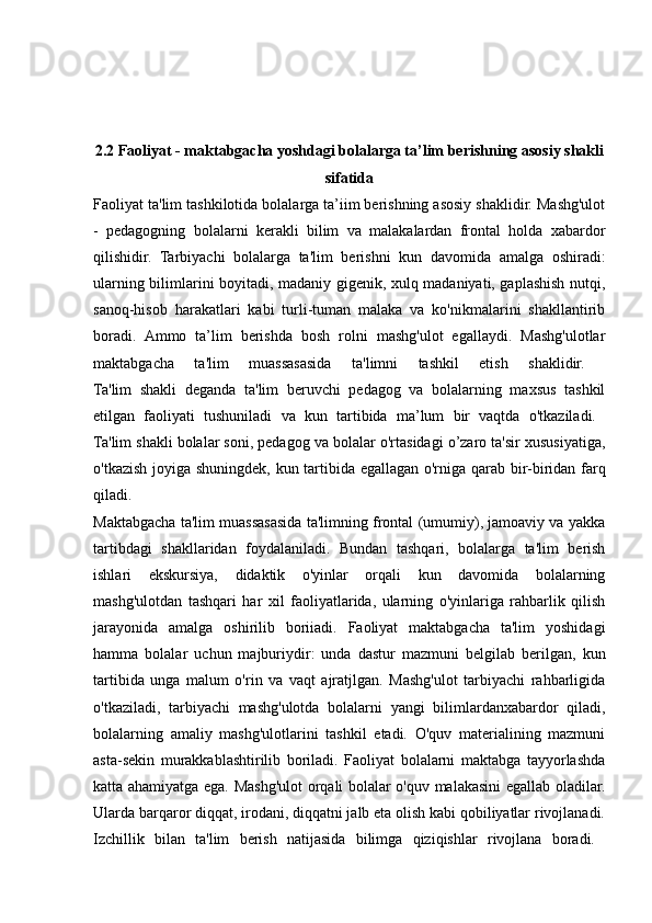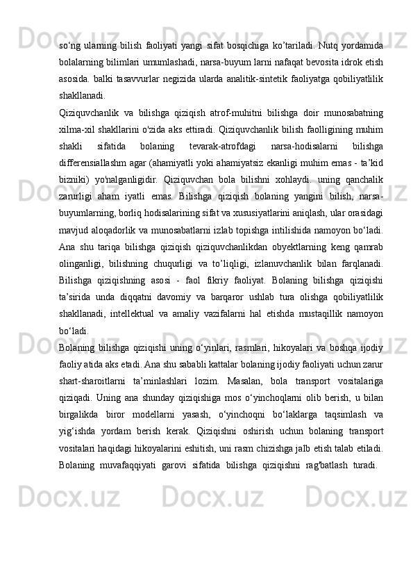 Maktabgacha ta'lim tashkilotlari katta yosh guruh bolalarida aqlliy tarbiya berishning mazmun mohiyati