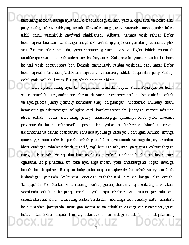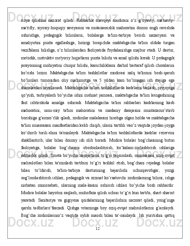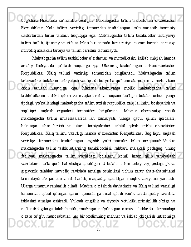 2.1. Maktabgacha taʼlimni boshqarishda mudiraning roʻli............................20