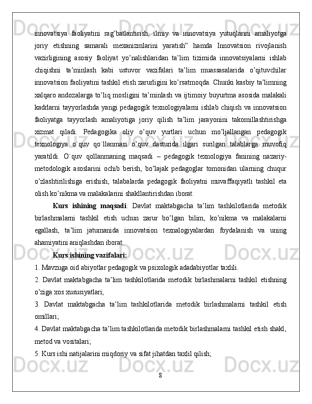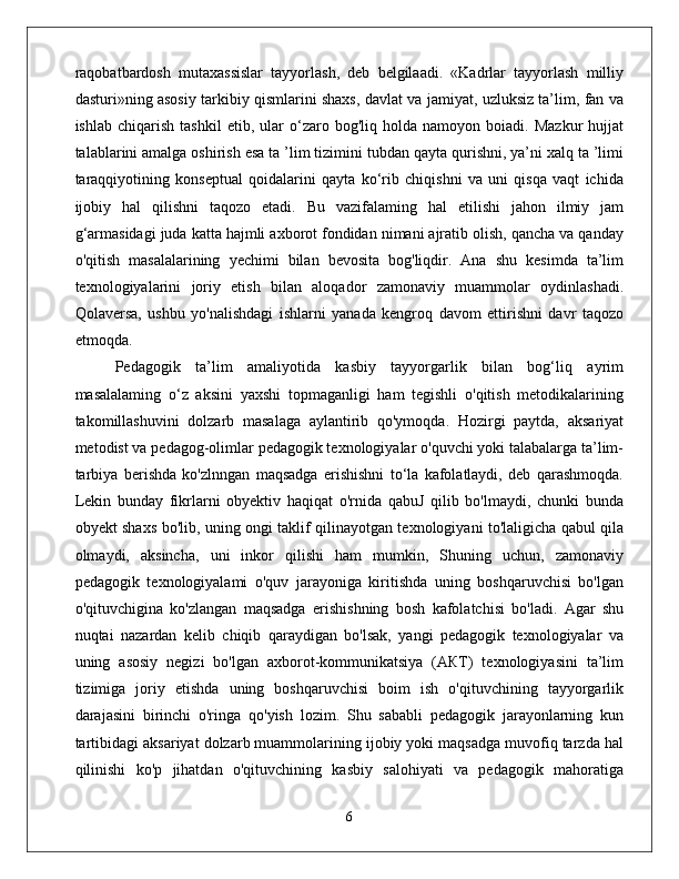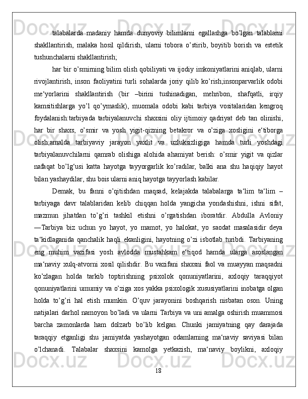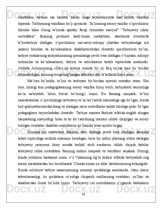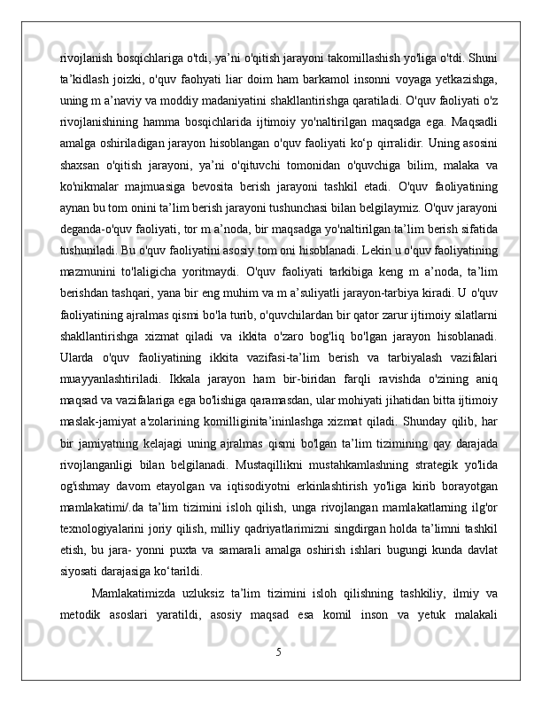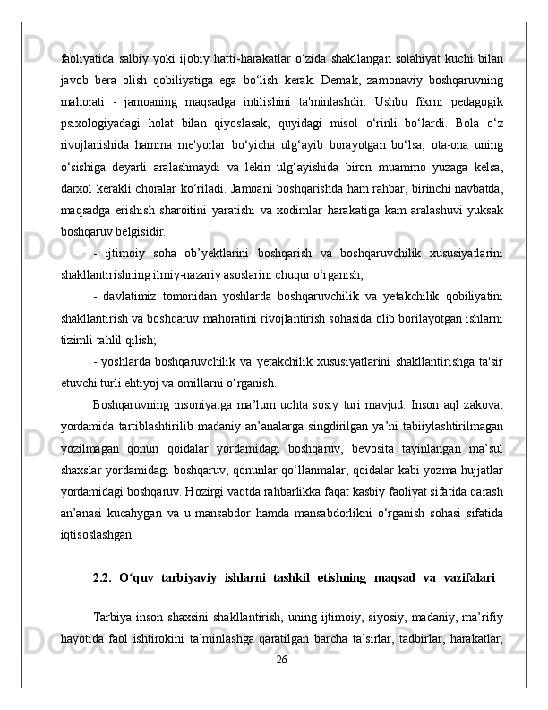 2.2. Oʻquv tarbiyaviy ishlarni tashkil etishning maqsad va vazifalari .........26