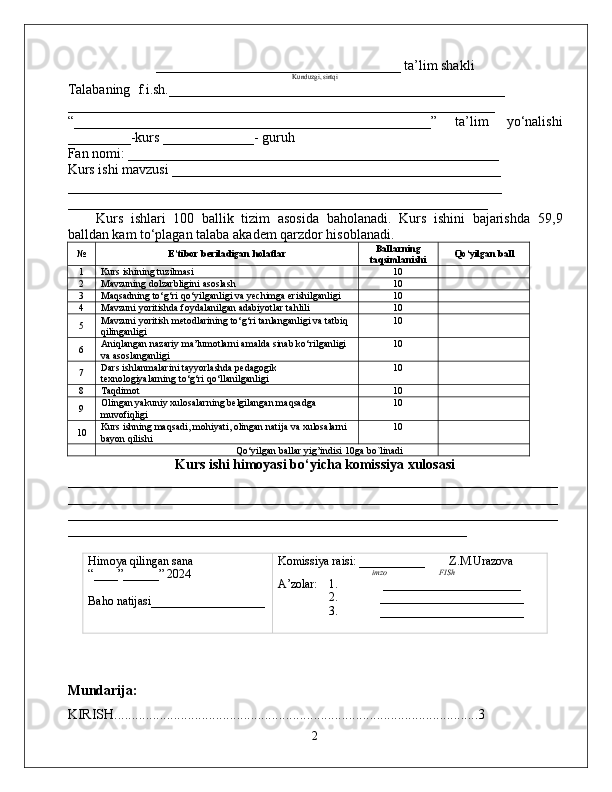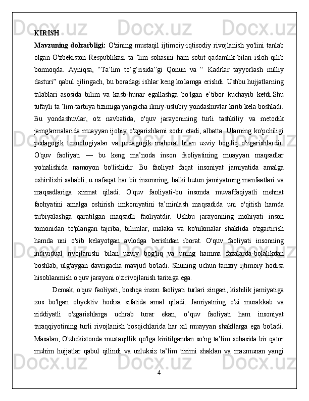 4. Foydalanilgan adabiyotlar roʻyxati...............................................................32