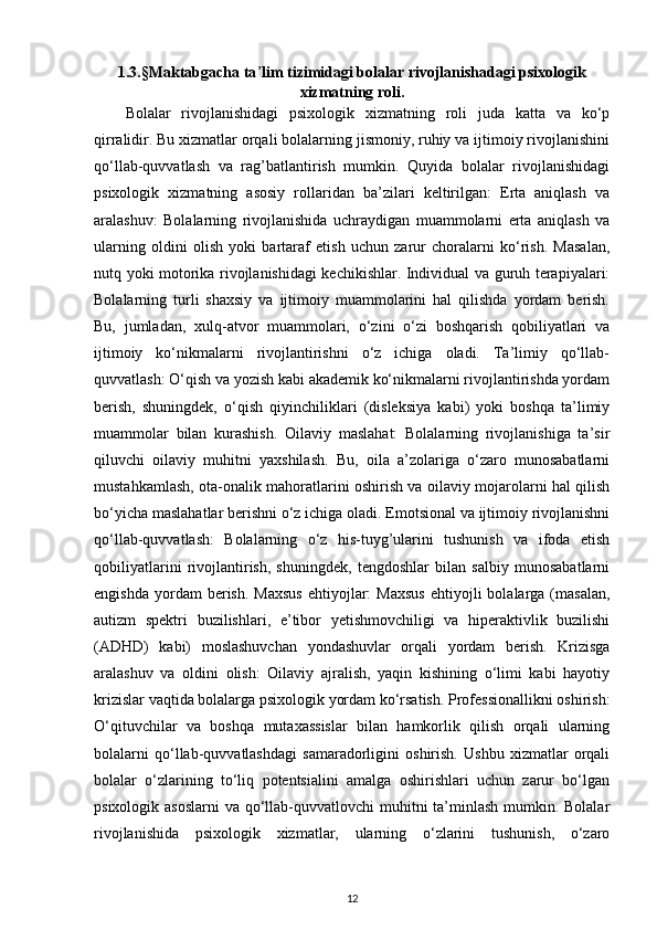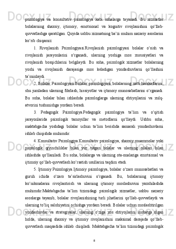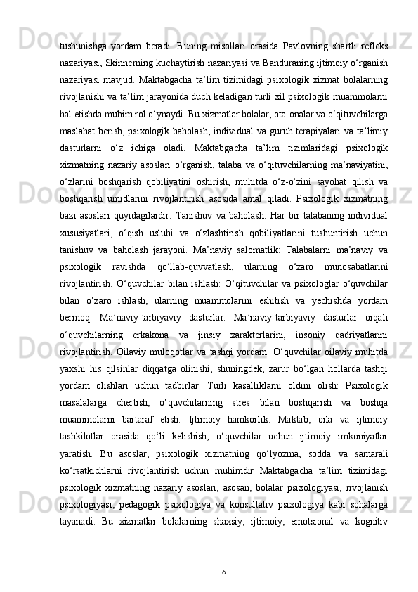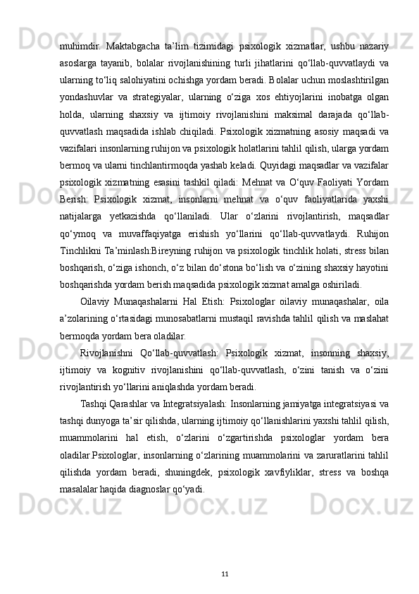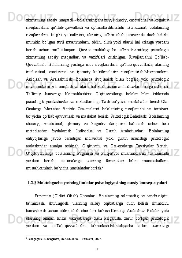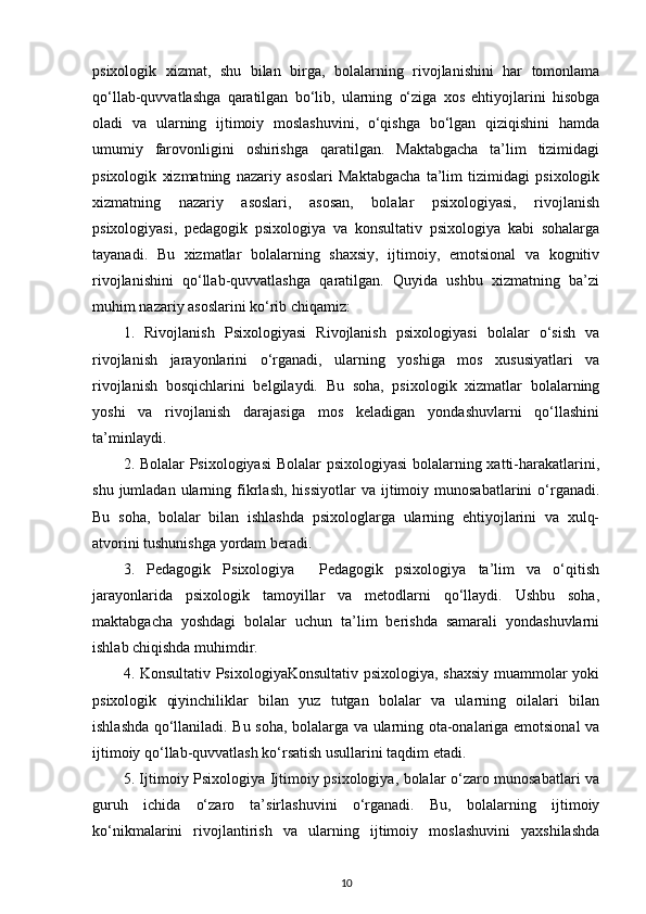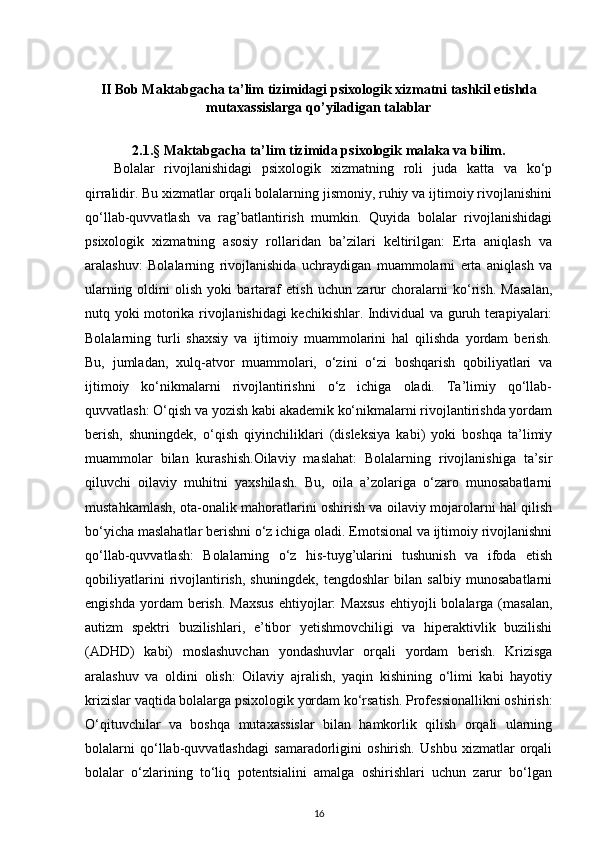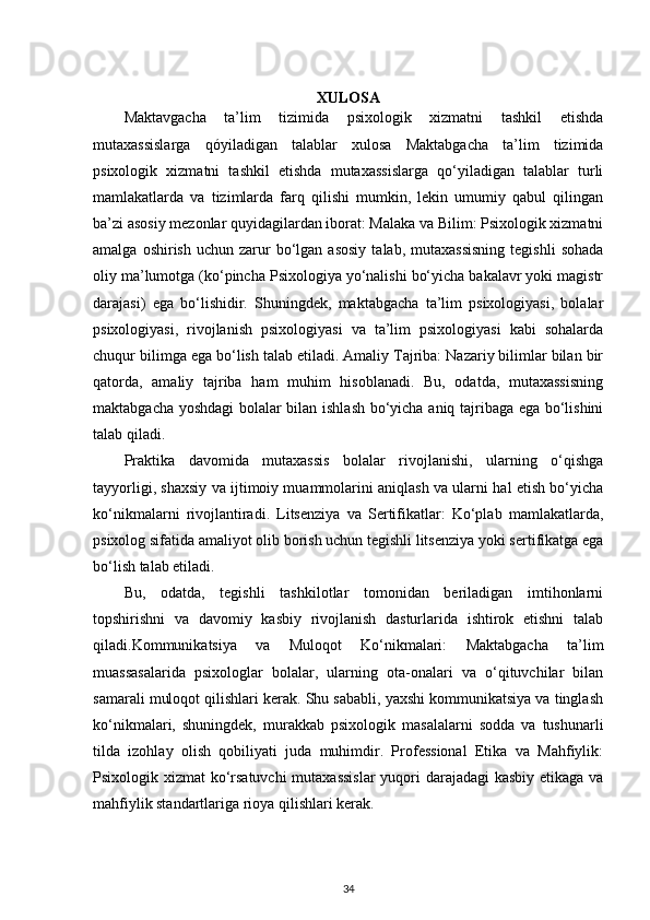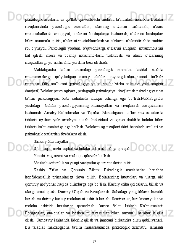 MAKTABGACHA TA’LIM TIZIMIDA PSIXOLOGIK XIZMATNI TASHKIL ETISHDA MUTAXASSISLARGA QO‘YILADIGAN TALABLAR .