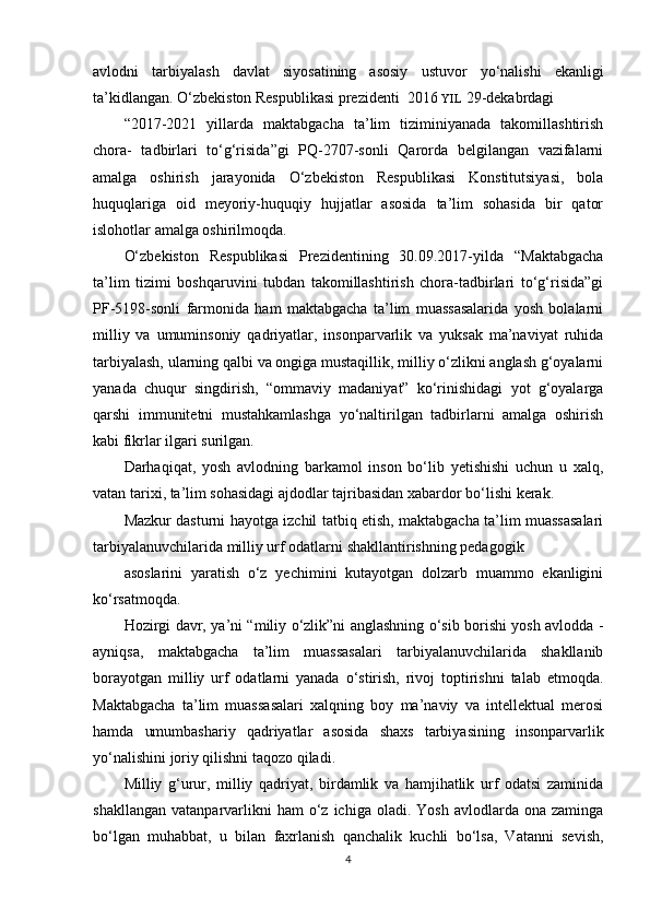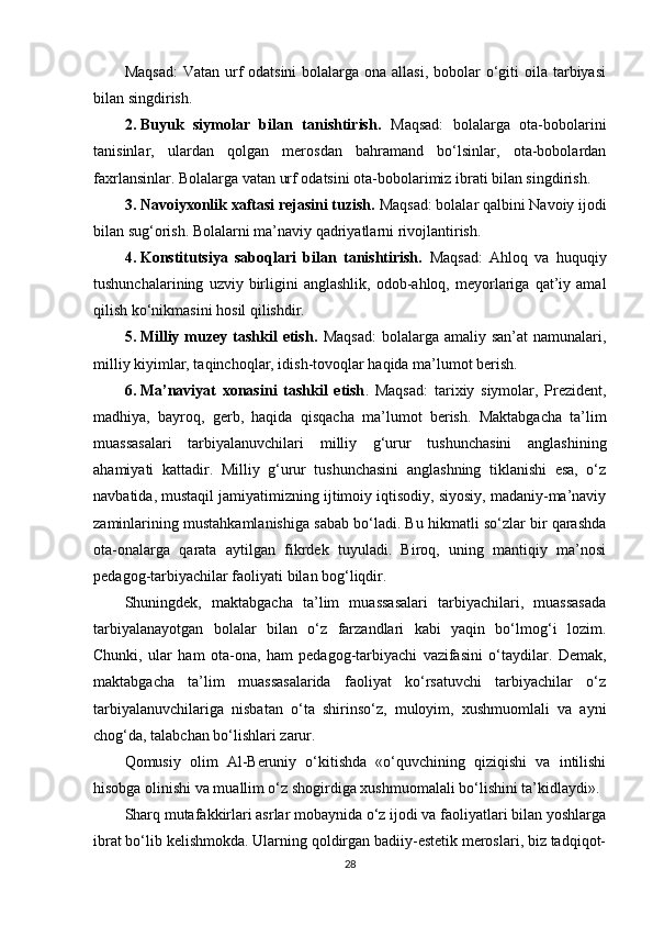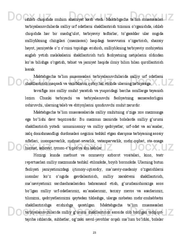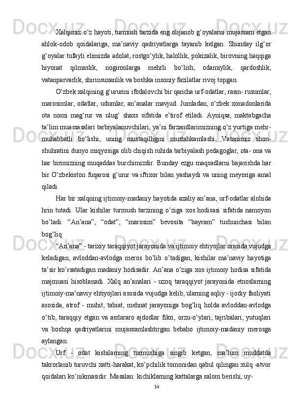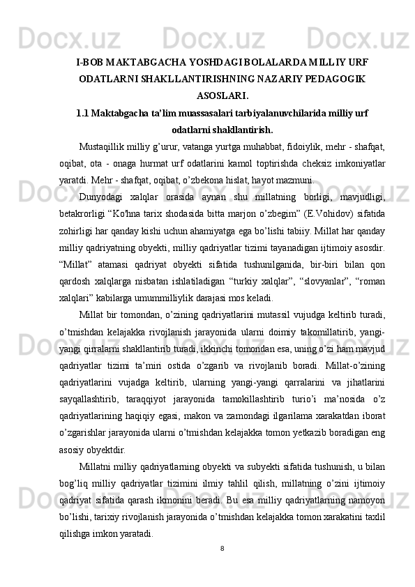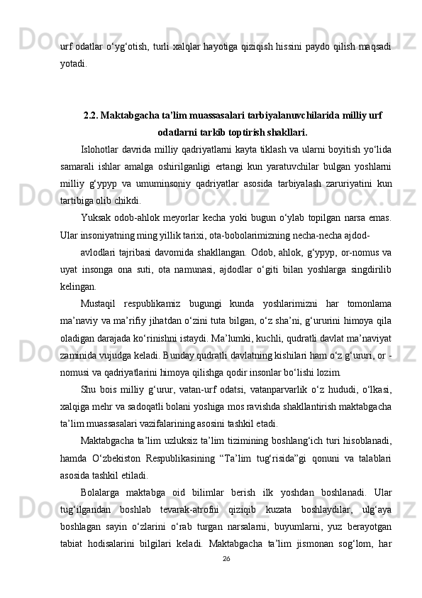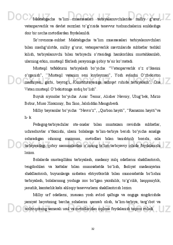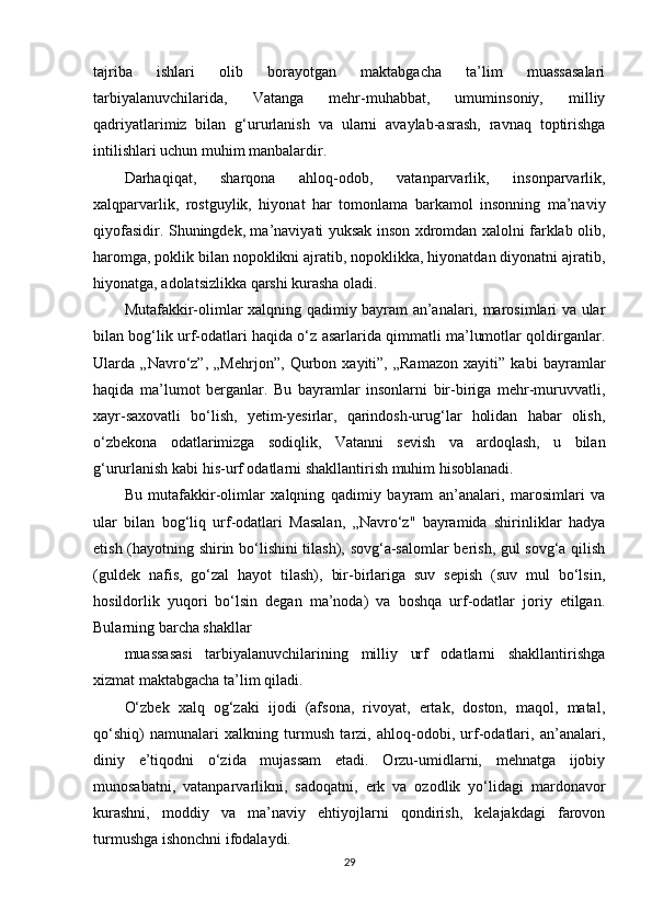Maktabgacha ta’lim yoshidagi bolalar shaxsini barkamol qilib tarbiyalashda milliy urf odatlardan foydalanish