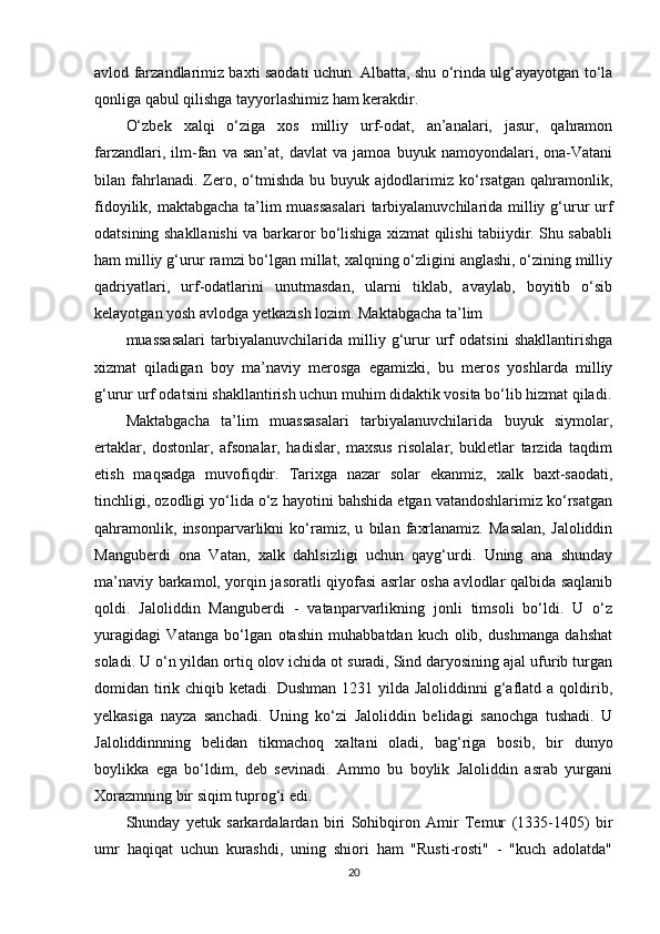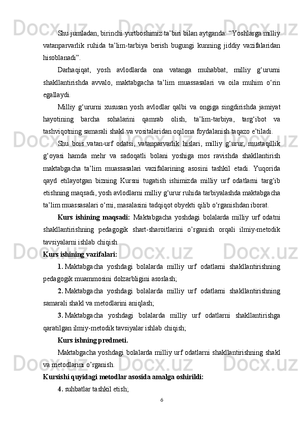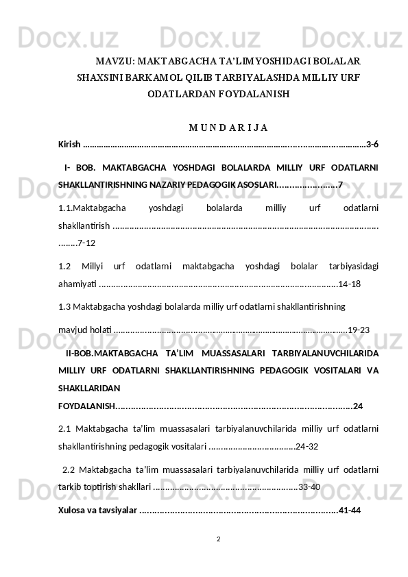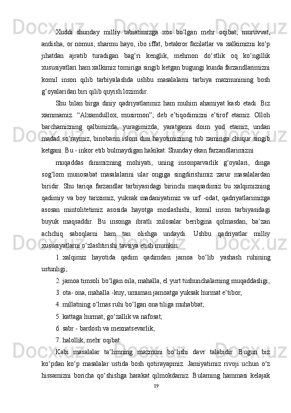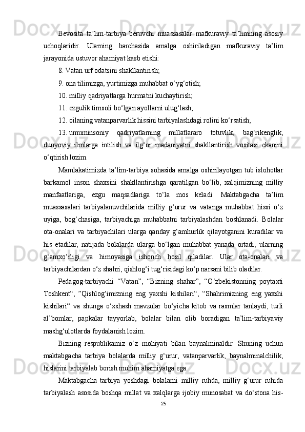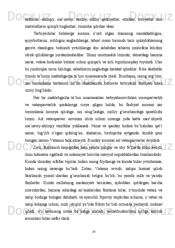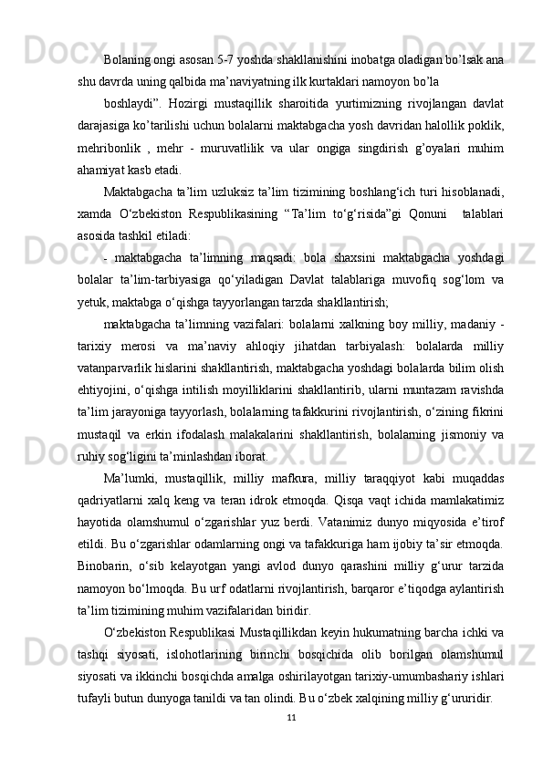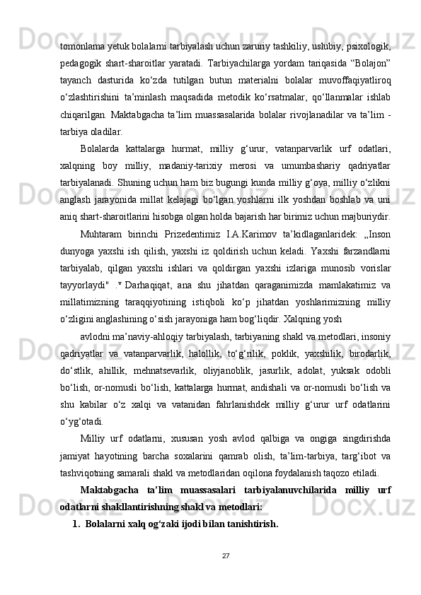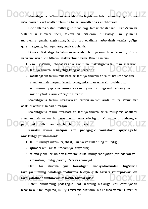 Maktabgacha ta’lim yoshidagi bolalar shaxsini barkamol qilib tarbiyalashda milliy urf odatlardan foydalanish
