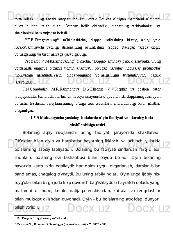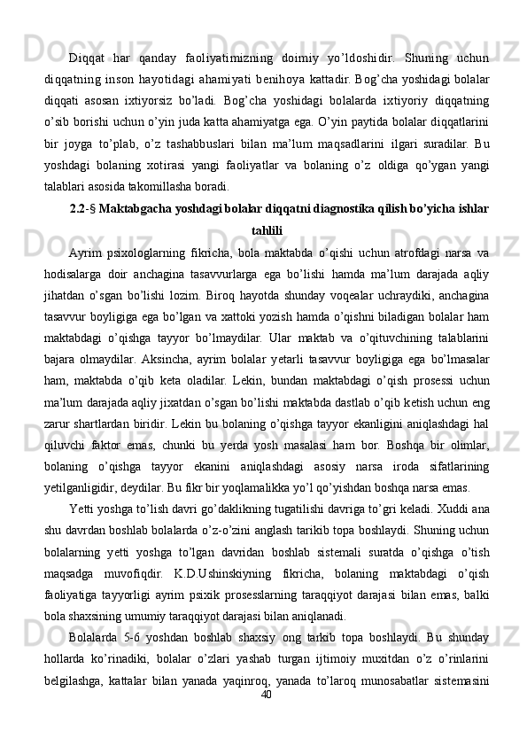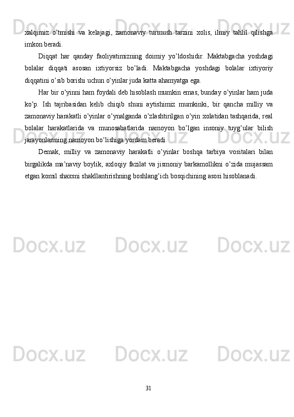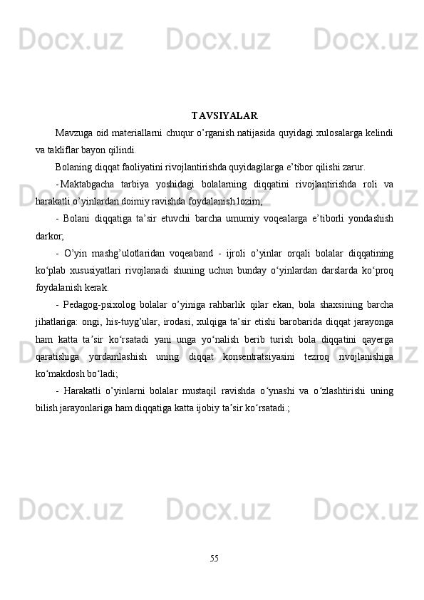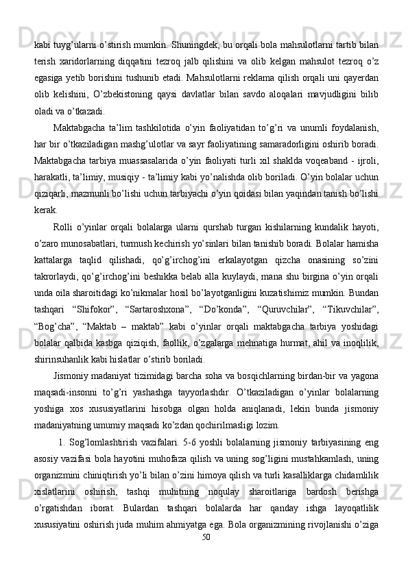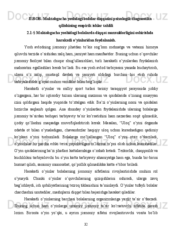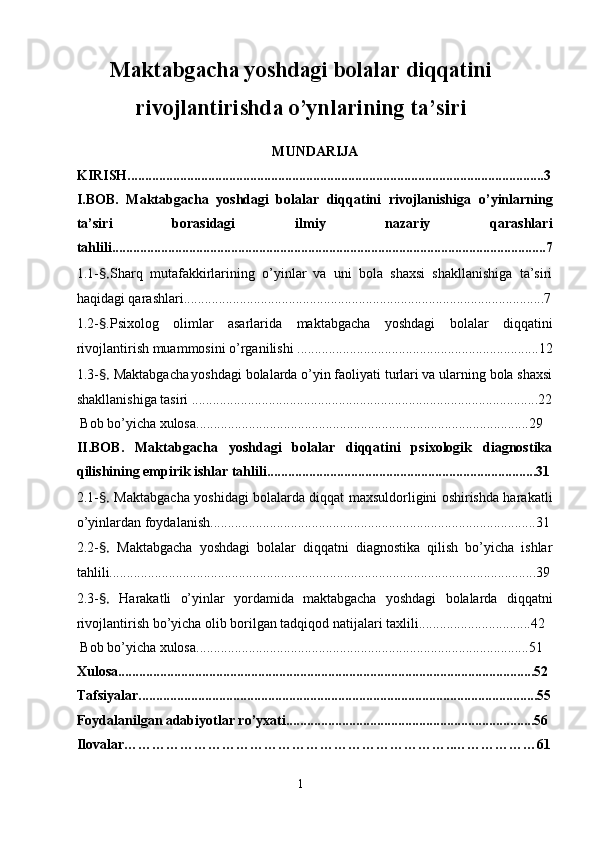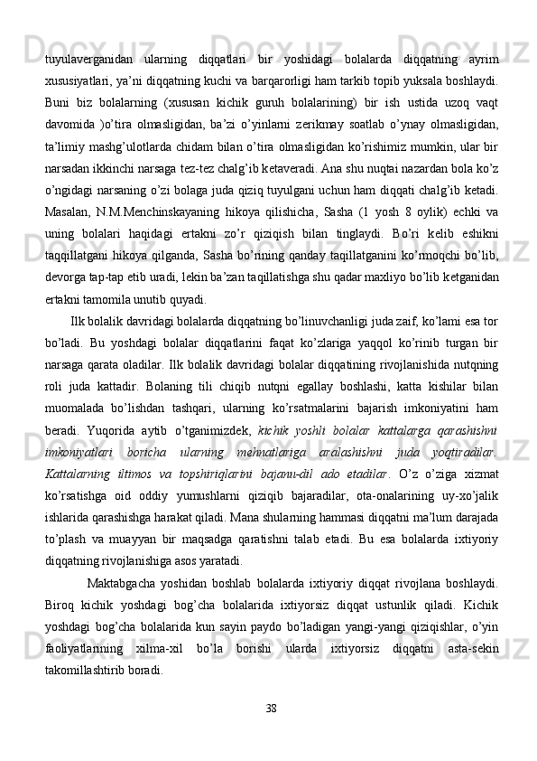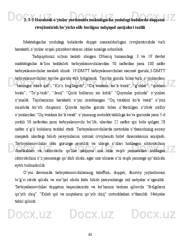 Maktabgacha yoshdagi bolalar diqqatini rivojlantirishda o’ynlarining ta’siri