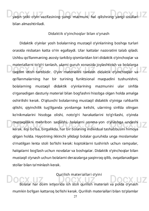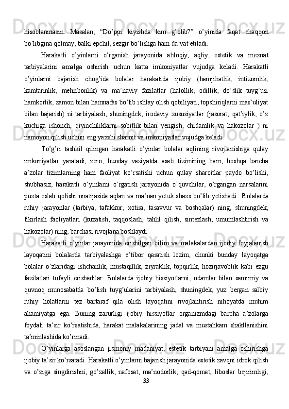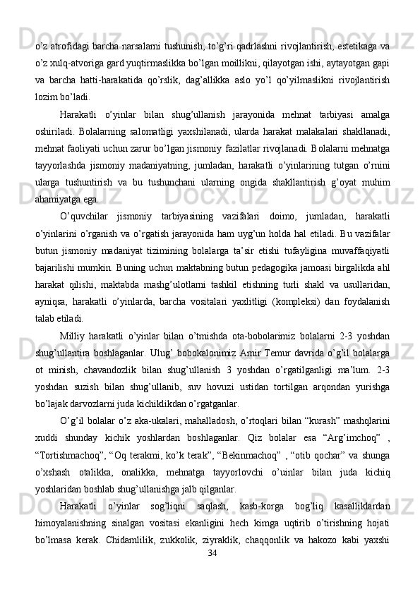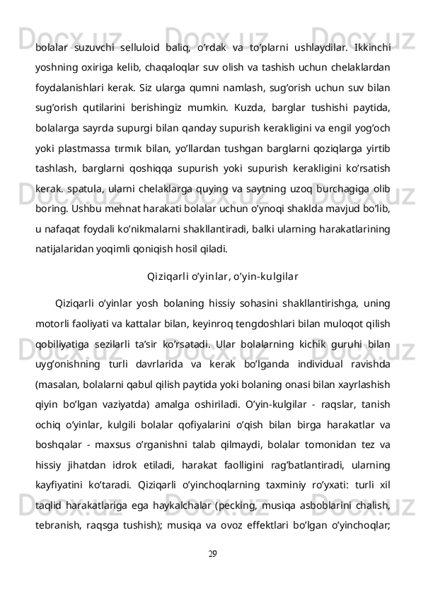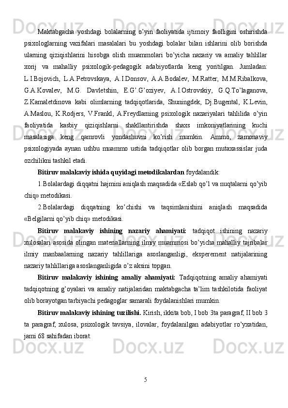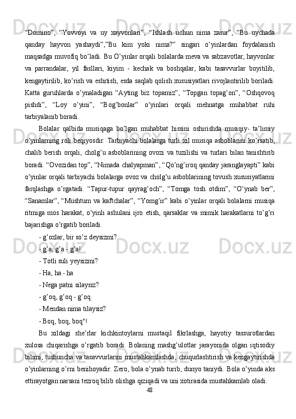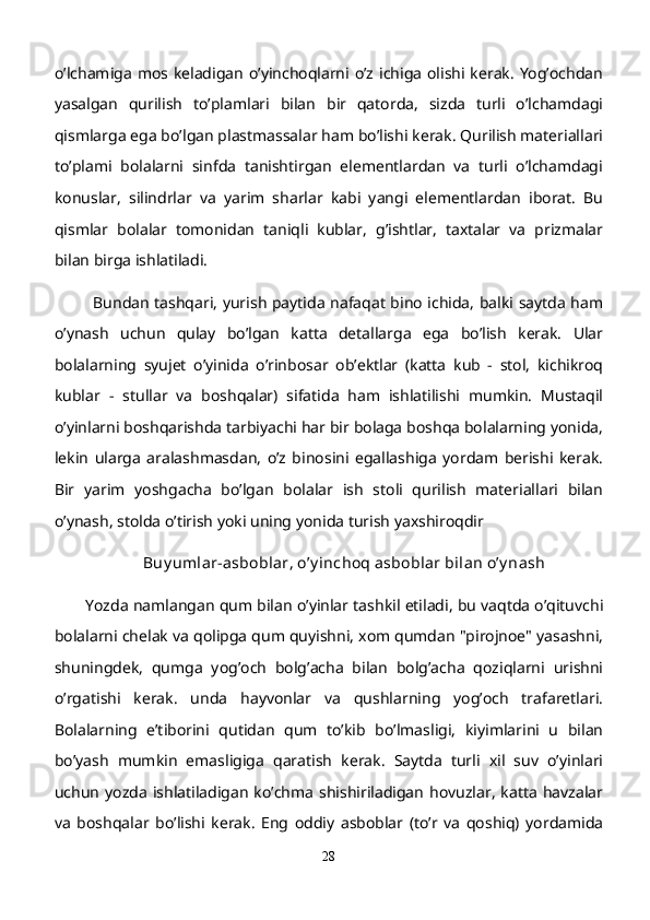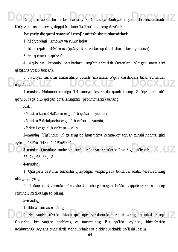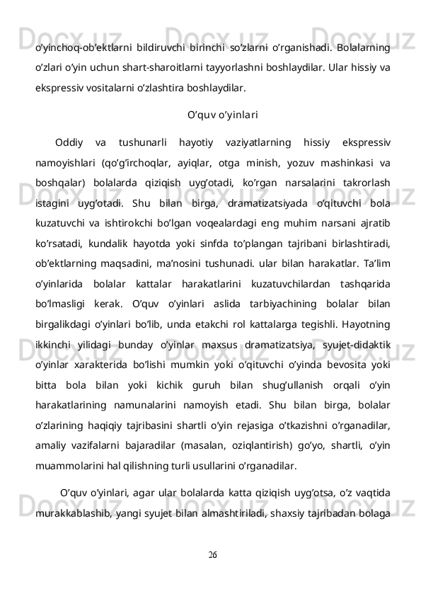 Maktabgacha yoshdagi bolalar diqqatini rivojlantirishda o’ynlarining ta’siri