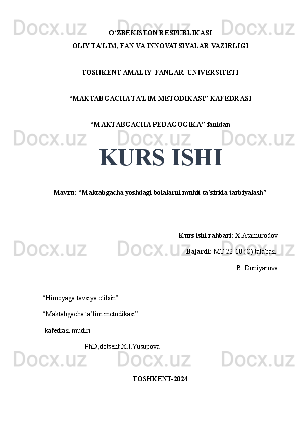 Maktabgacha yoshdagi bolalarni muhit ta’sirida tarbiyalash