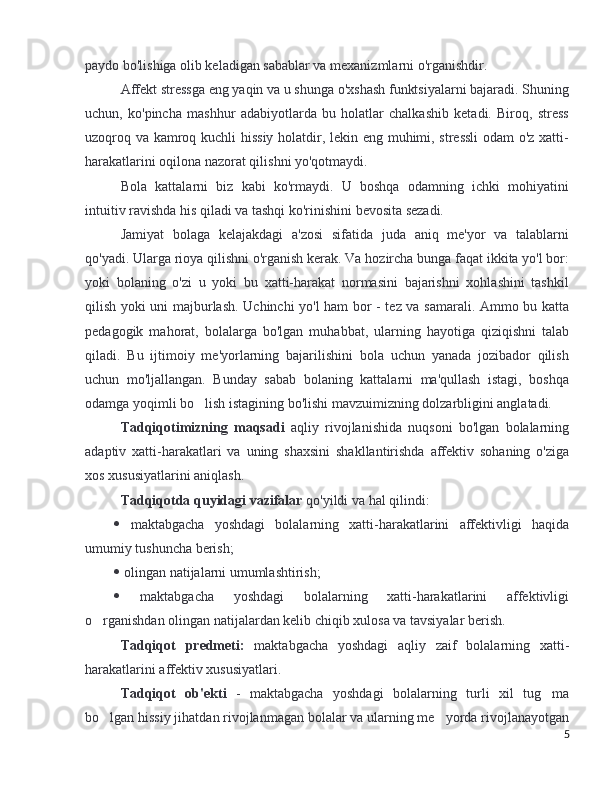 Maktabgacha yoshdagi bolalarning xatti-harakatlarini affektivligi xususiyatlari