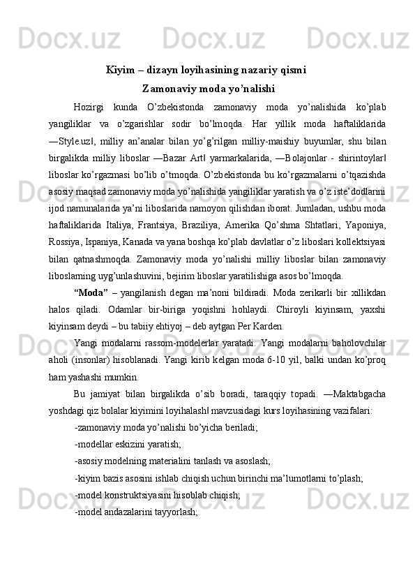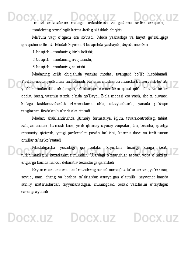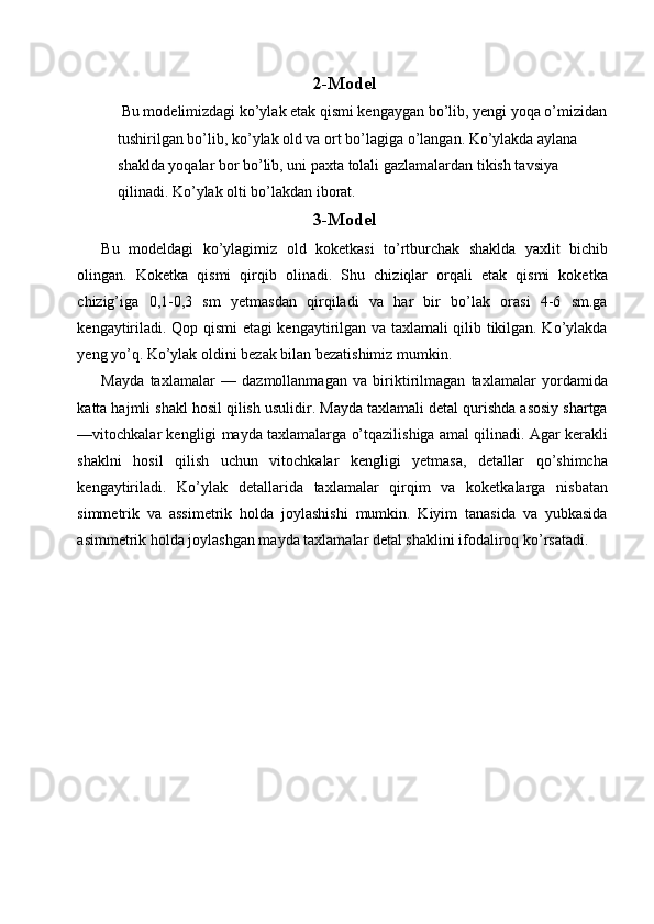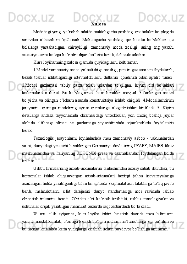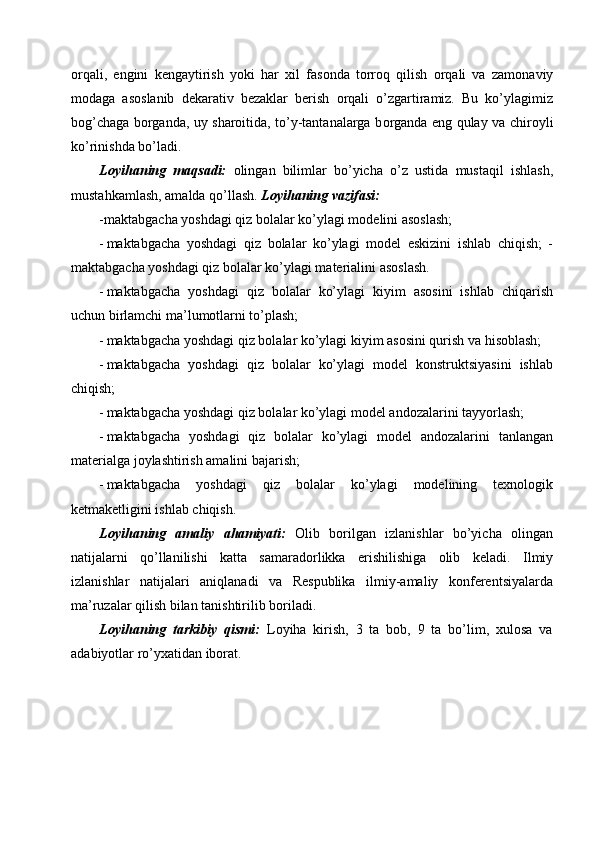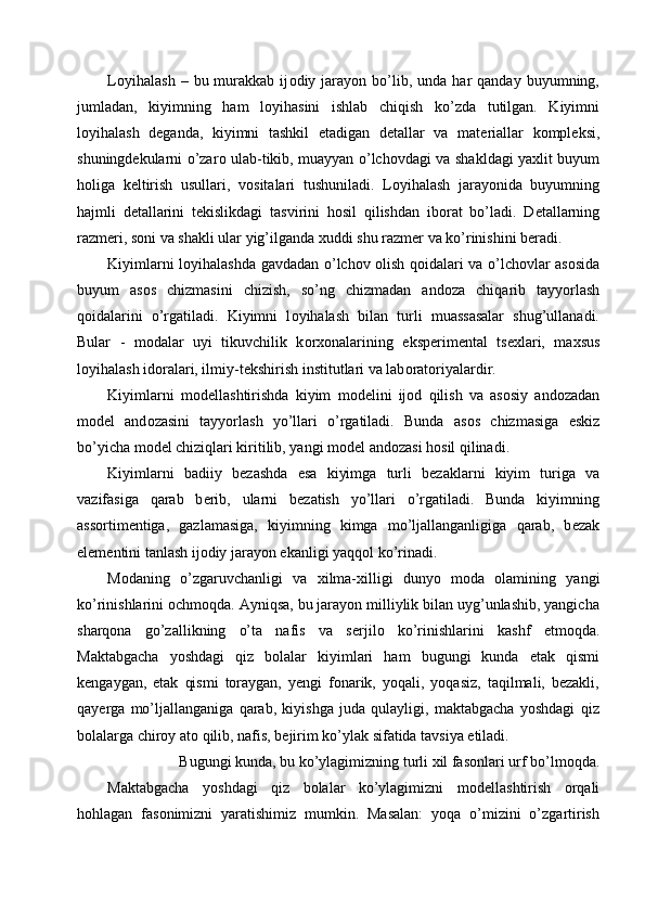 Maktabgacha yoshdagi qiz bolalar ko’ylagini loyihalash