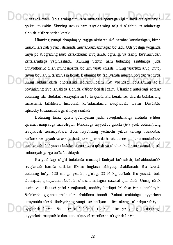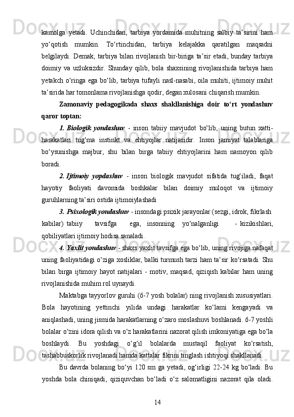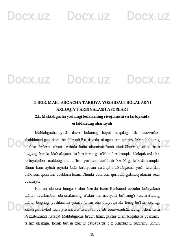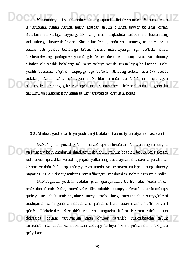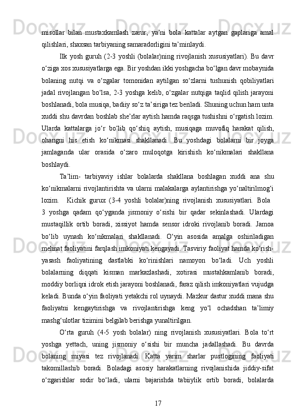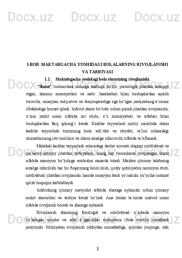 Maktabgacha yoshidagi bolalarning rivojlanishi va ta’lim tarbiyasi