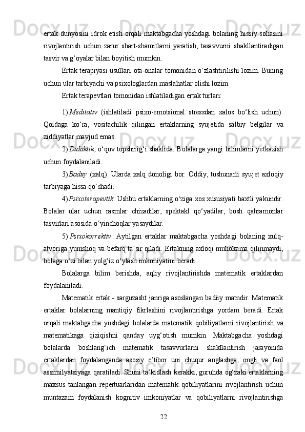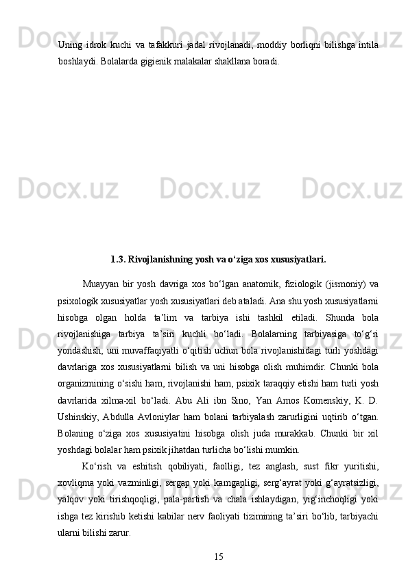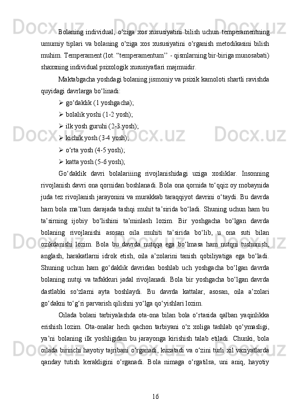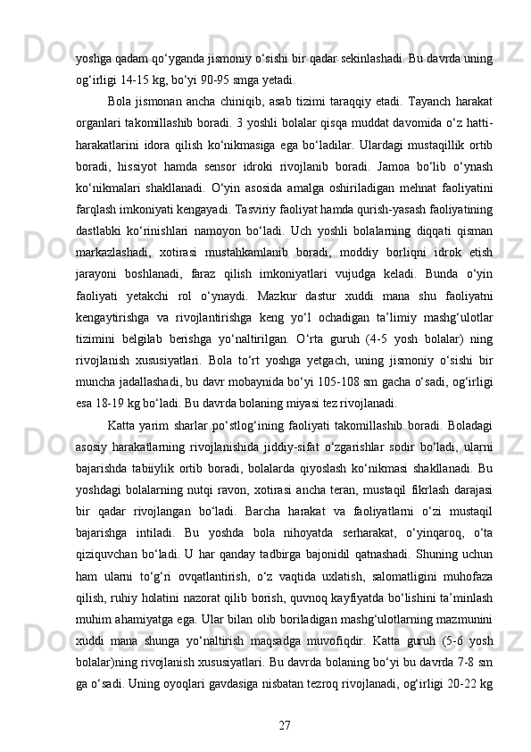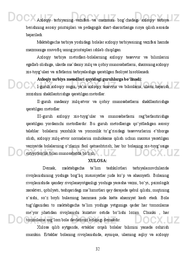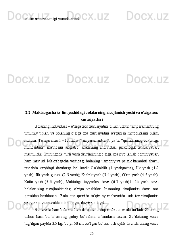 Maktabgacha yoshidagi bolalarning rivojlanishi va ta’lim tarbiyasi