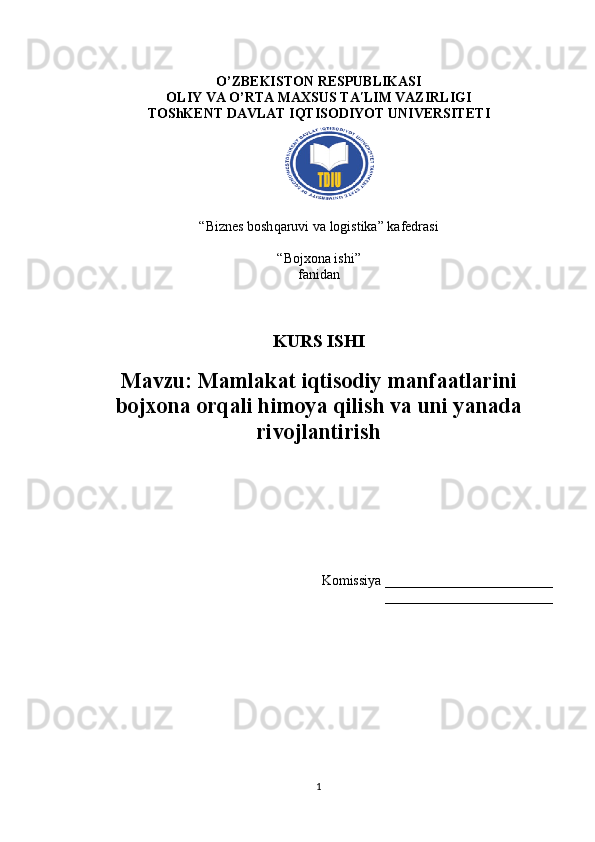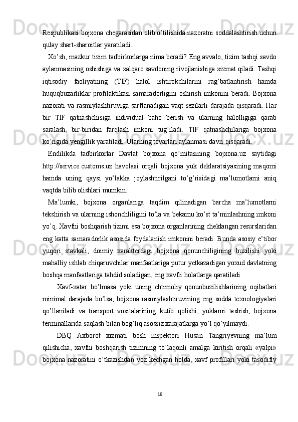 Mamlakat iqtisodiy manfaatlarini bojxona orqali himoya qilish va uni yanada rivojlantirish