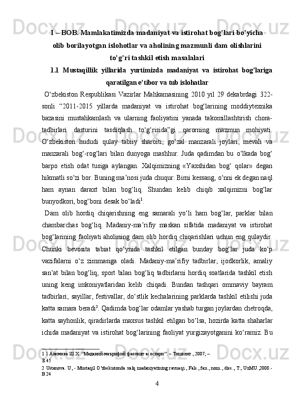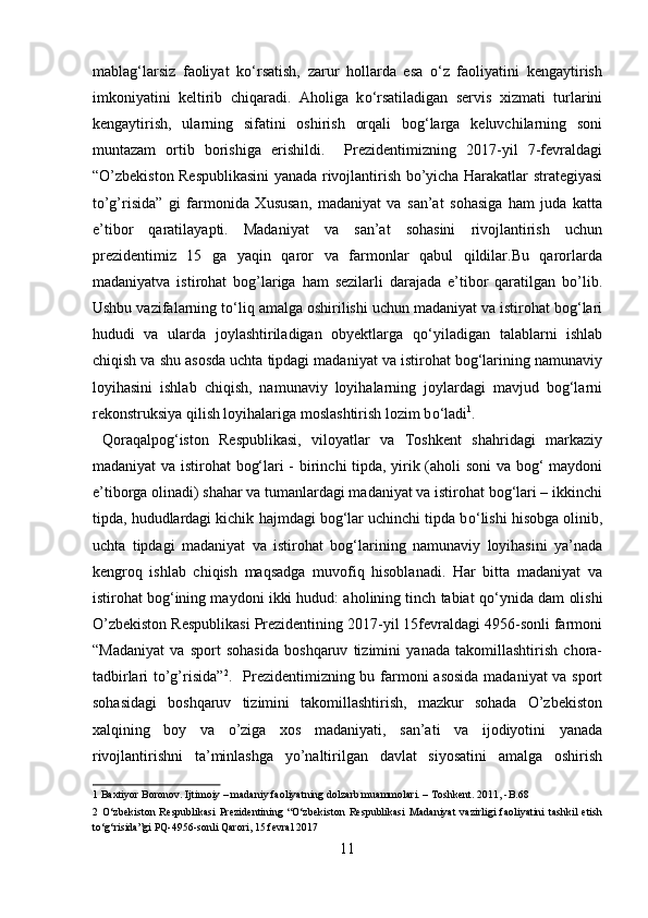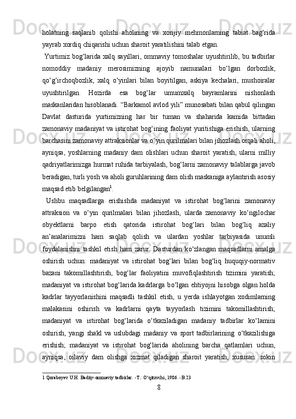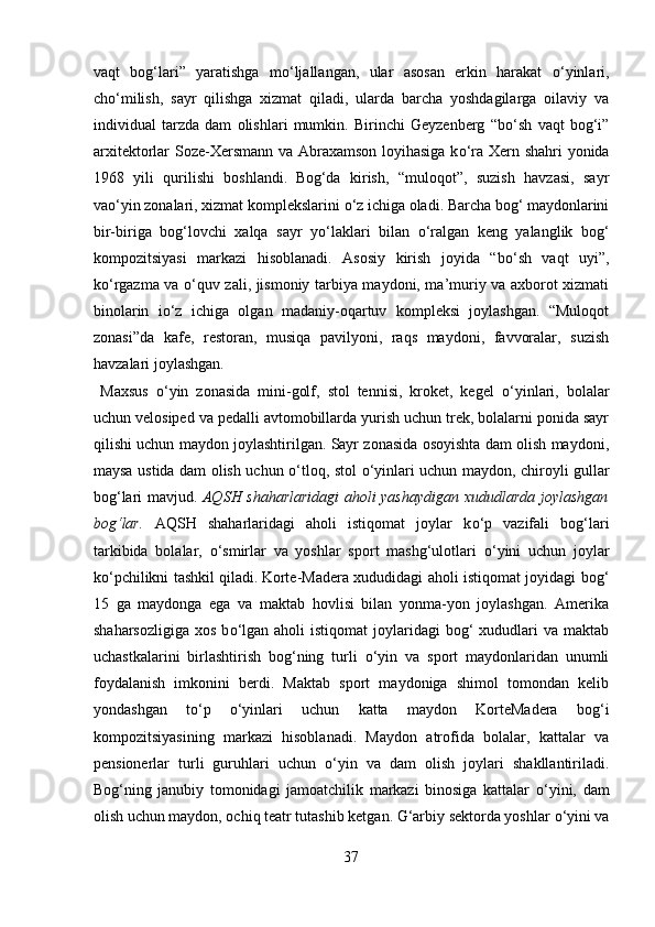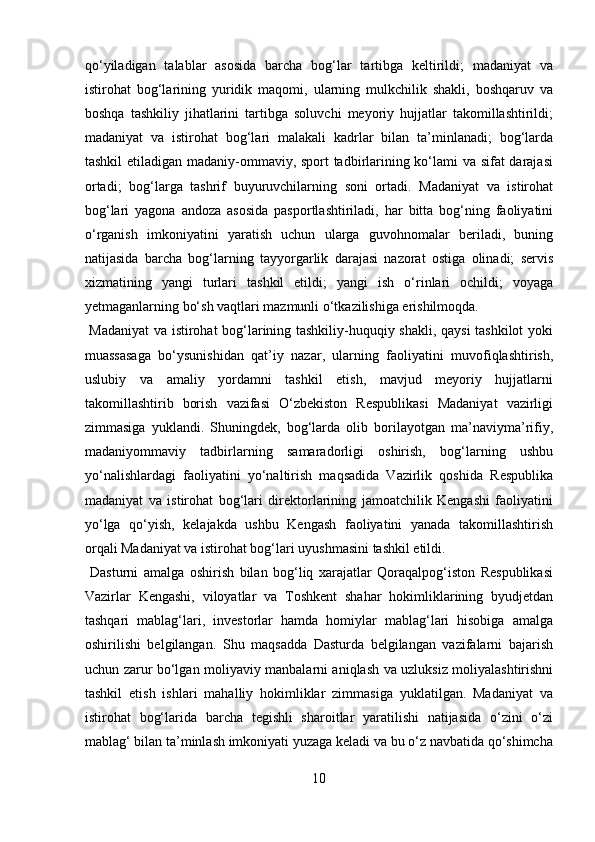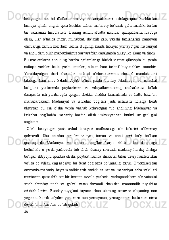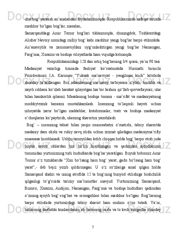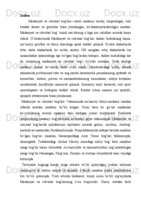 Mamlakatimizdagi madaniyat va istirohat bog’lari haqida